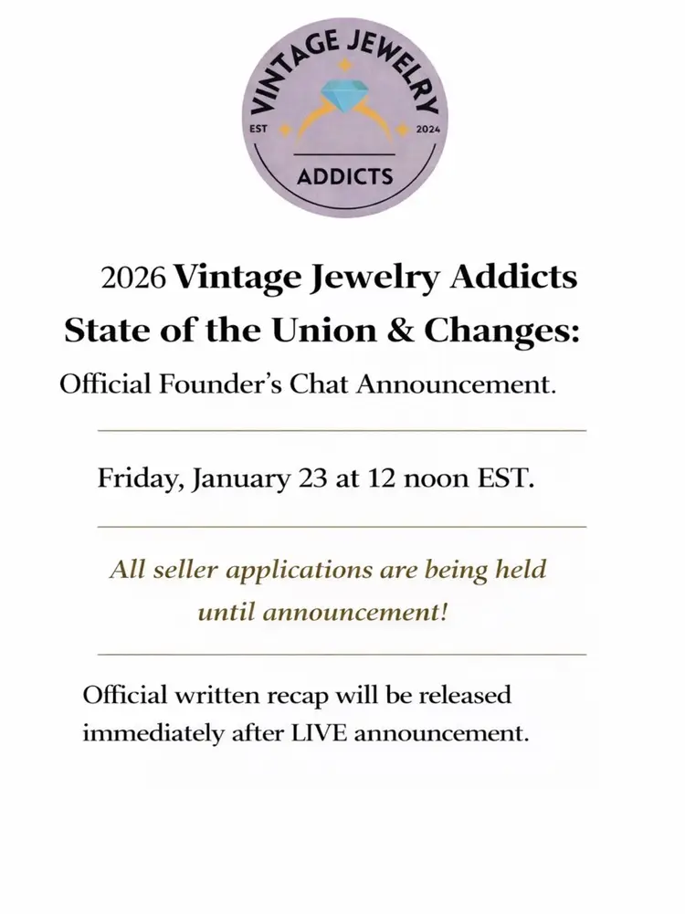Home to the very best vintage, antique, modern and handmade jewelry + accessories (bags, belts, hats, and more!) for sale. Sell-as-you-wish live sales Monday-Thursday and before 5:30pm EST on Friday, Saturday, Sunday. Subscribe to sell on weekend evenings 5:30pm EST or later. Community themed trains weekly! All jewelry addicts welcome here. Buy and sell your collection with us!