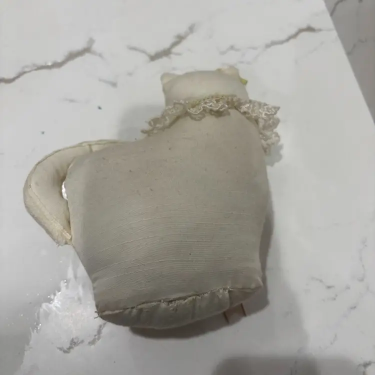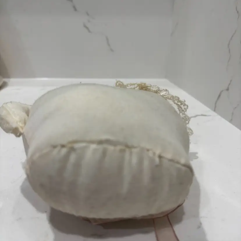 6.75” Some discoloration to material - can’t tell if originally white.