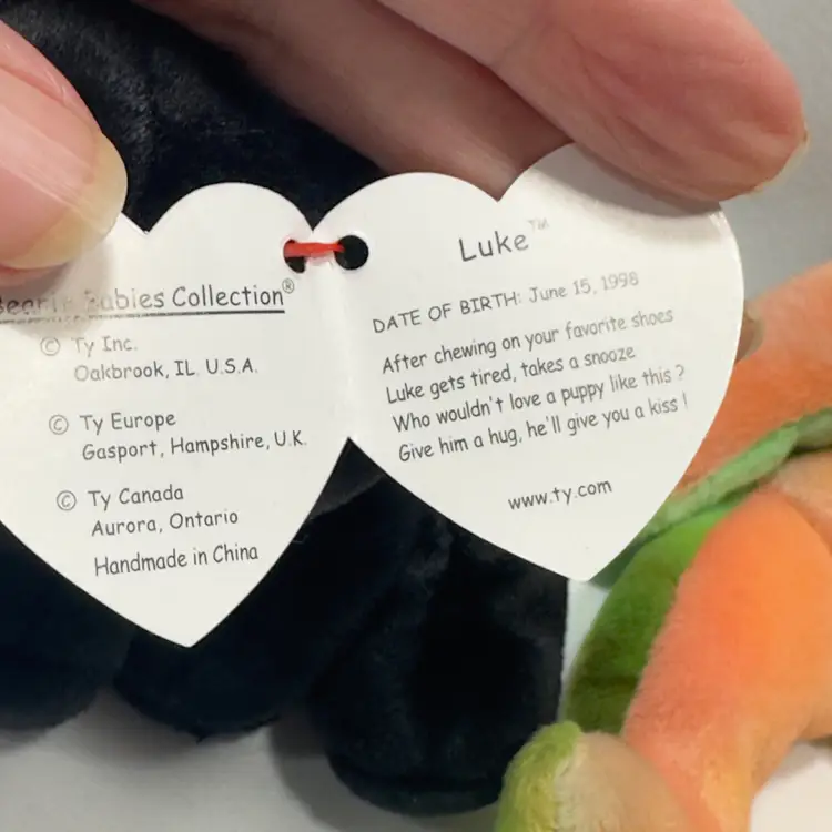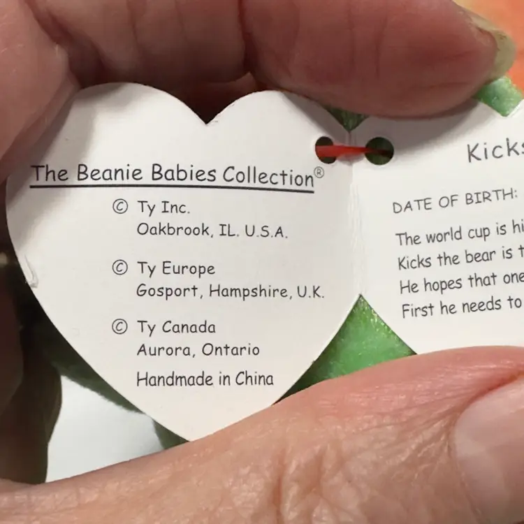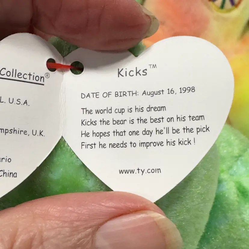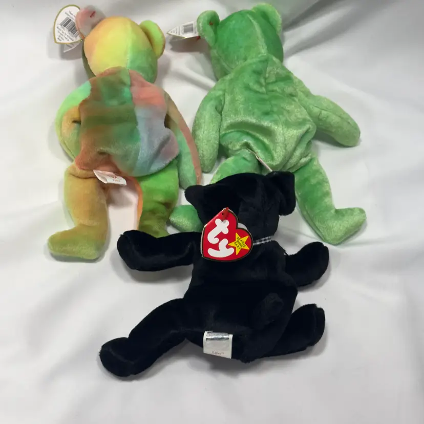 TY Beanie Baby's, Lot Set of 3, Peace Feb 1, 1996 Luke June 15 1998 and Kicks aug 16th 1998 all 3 have the typo "Gasport instead of Gosport, and they have "Oakbrook instead of Oak Brook" Peace bear is filled with pvc pellets that are no longer used by BB. All are in good condition with no stains or tears.