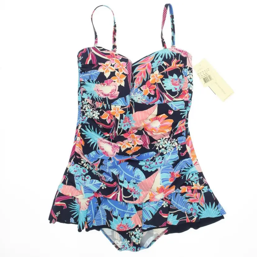 Labeled 14 but runs small. Style E23062047, Navy & Multicolor