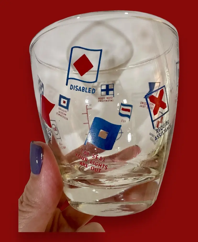 Add some retro charm to your home bar with these vintage Exxon Esso highball glasses from Libbey. The glassware set includes four glasses, each adorned with a different nautical flag design, perfect for all occasions and themed parties. The clear glass and highball glass style make them ideal for serving cocktails and the decorated features add a touch of elegance to your bar setup.