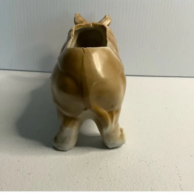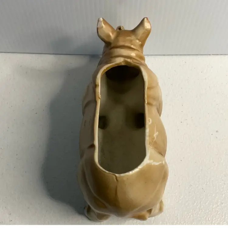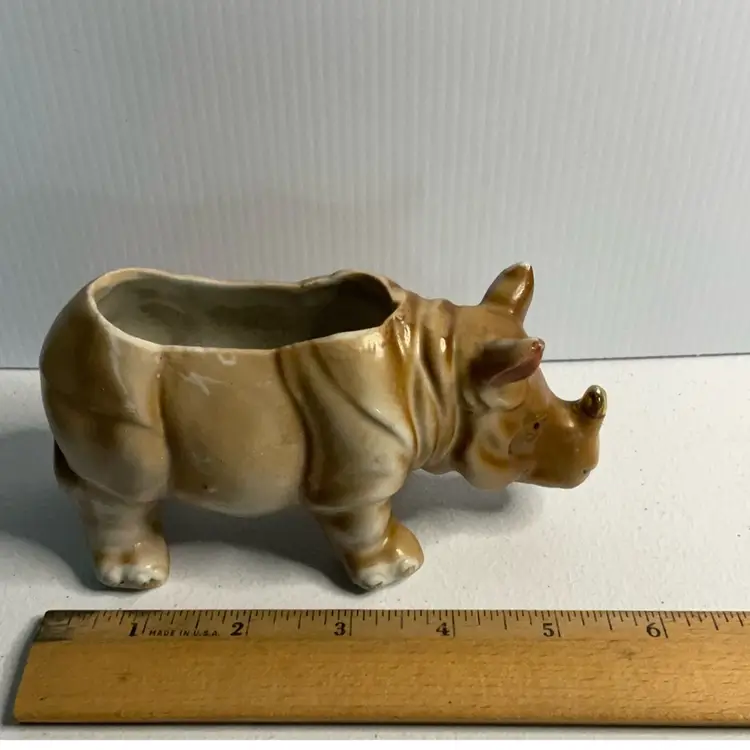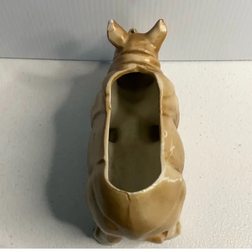 As shown no chips or cracks. Has paint wear. 5 inches long, 2.5 inches high