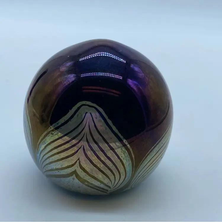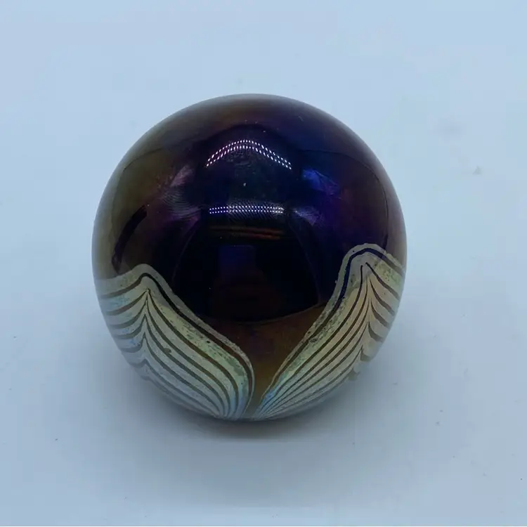2.5” no chips or cracks. Art glass paperweights gained significant popularity in the late 19th and early 20th centuries, with companies like Tiffany, Steuben, and later, Orient & Flume, producing exquisite examples. These pieces were often crafted using complex techniques, including lampworking and intricate internal designs, to create unique decorative objects. They served not only a functional purpose but also as status symbols and artistic expressions within the home.