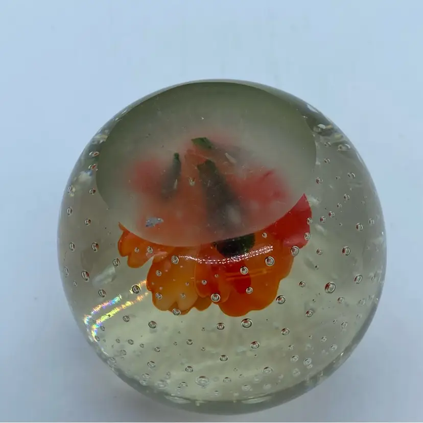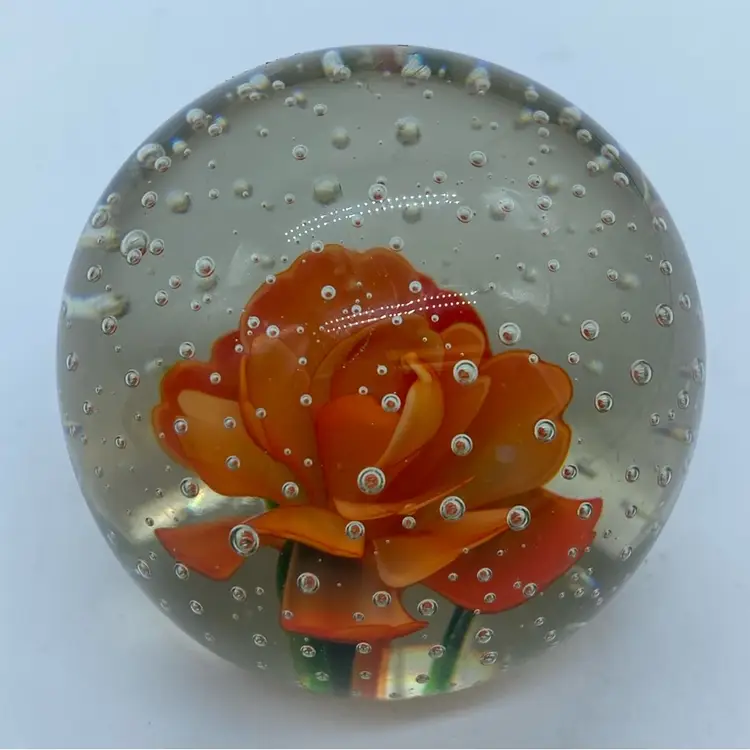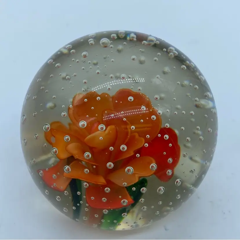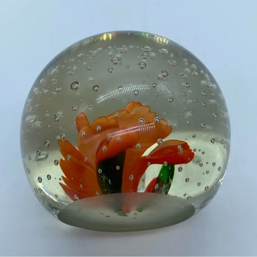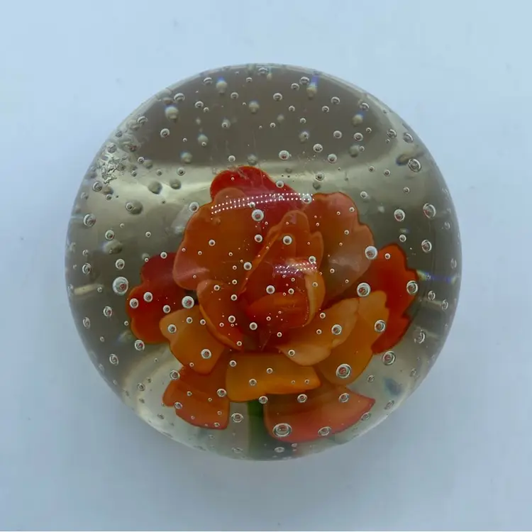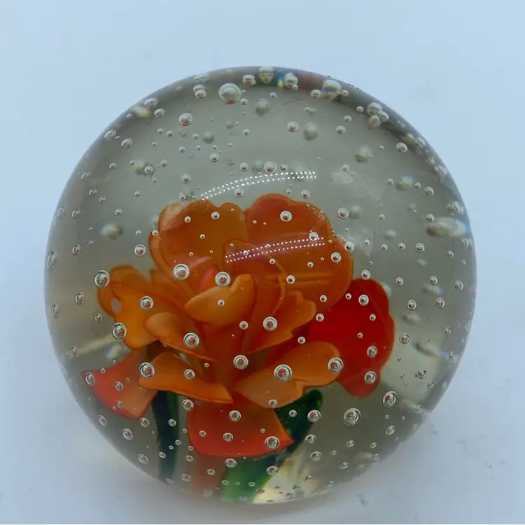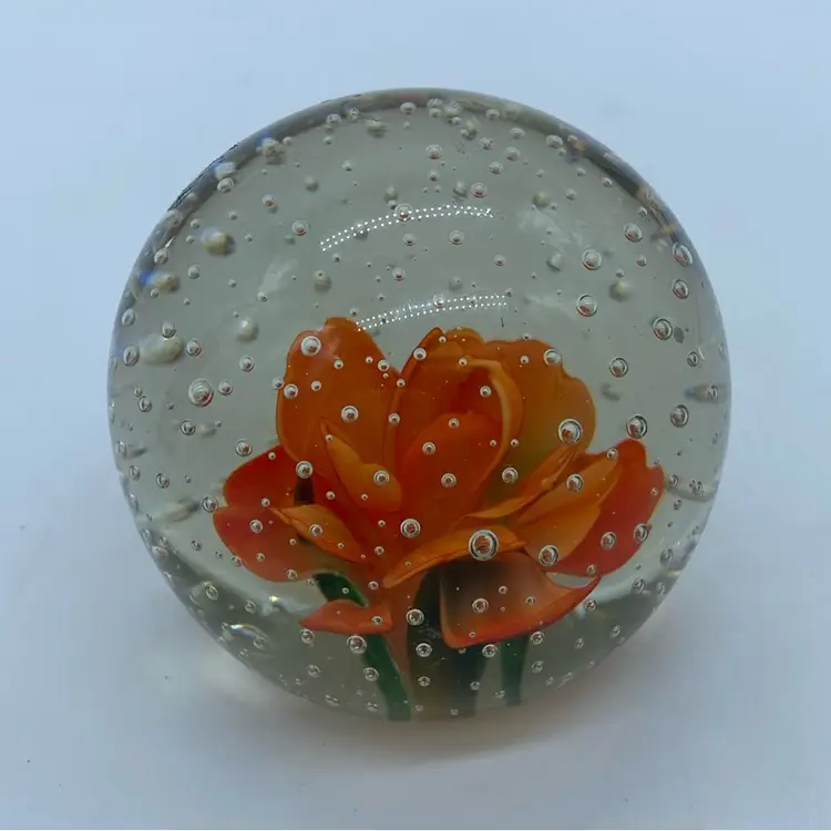 2.25” no chips or cracks. Glass paperweights have a rich history, evolving from functional desk accessories to intricate art forms. The development of controlled bubble techniques in the 19th century allowed for increasingly complex and beautiful inclusions within the glass. These pieces often showcase floral designs, animals, or abstract patterns, becoming highly sought after by collectors.