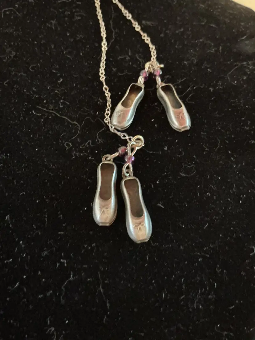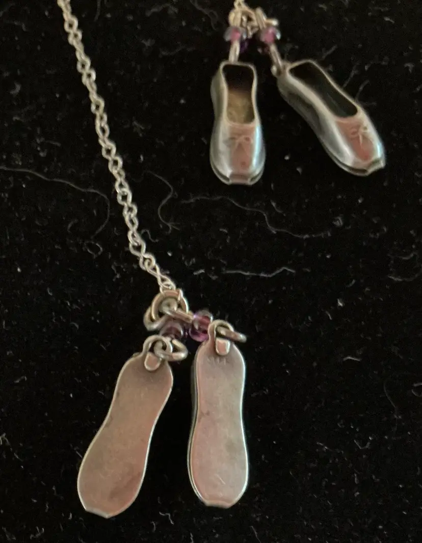 Good pre-owned condition with normal signs of use and wear; clasp works properly. Marked 925 on the backs of the slippers. Needs to be polished.