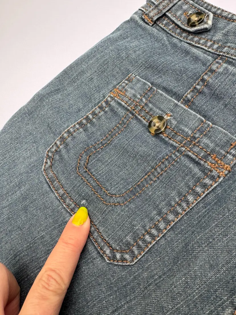 preloved, minor snag in denim on pocket, no hole, 17" Waist, 6" insteam, 10" rise