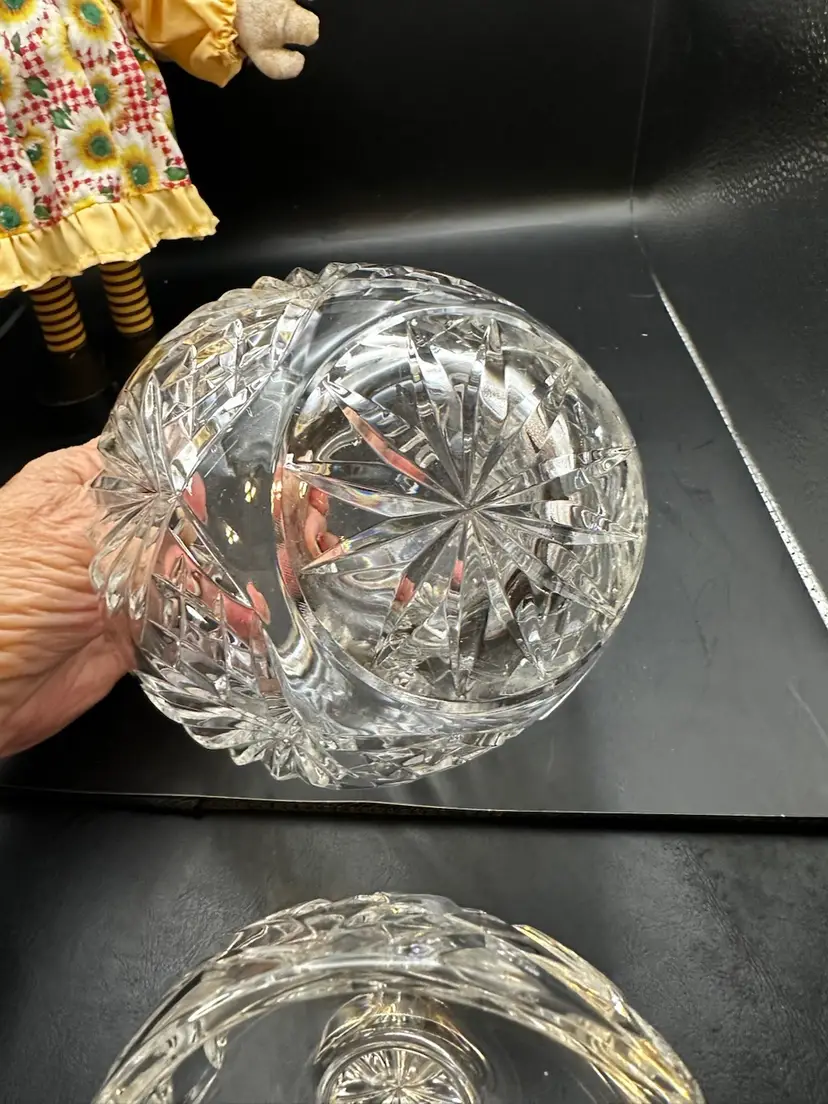 A 8 inch biscuit, cookie, or ginger jar likely made of 24% lead crystal,