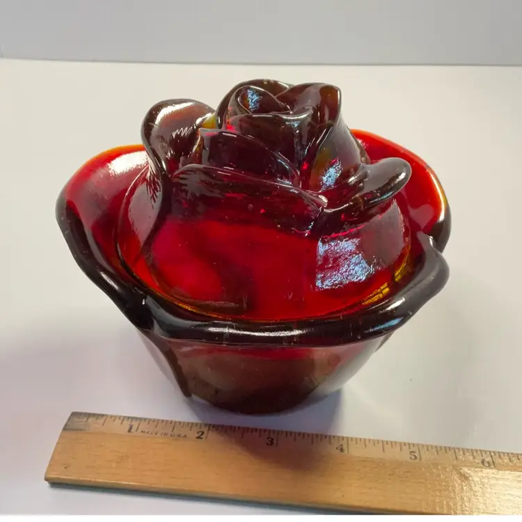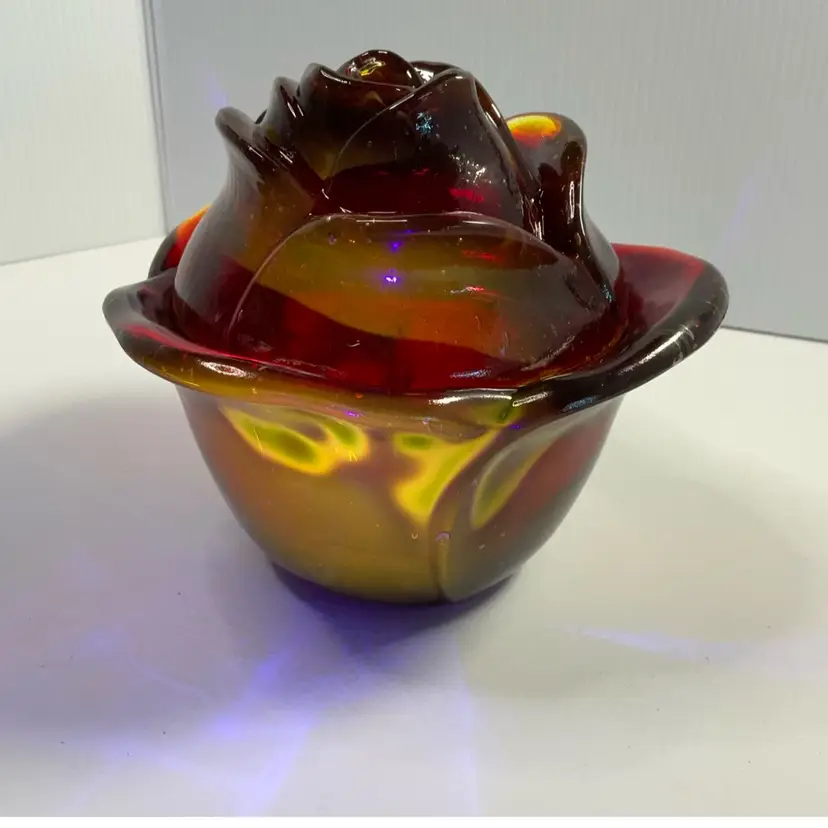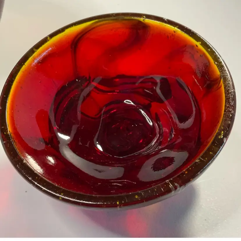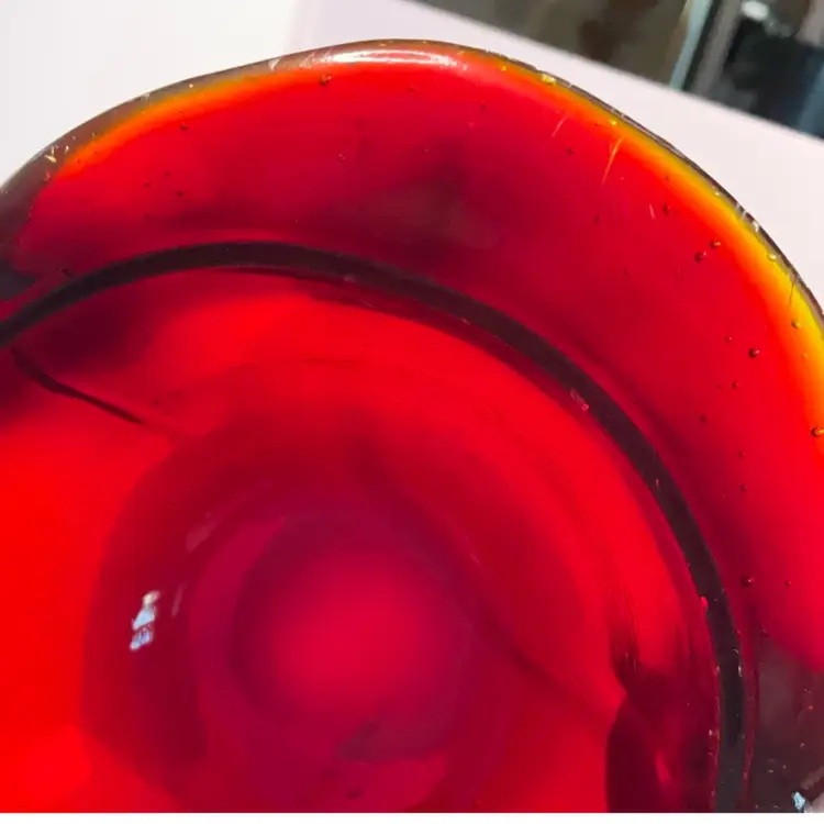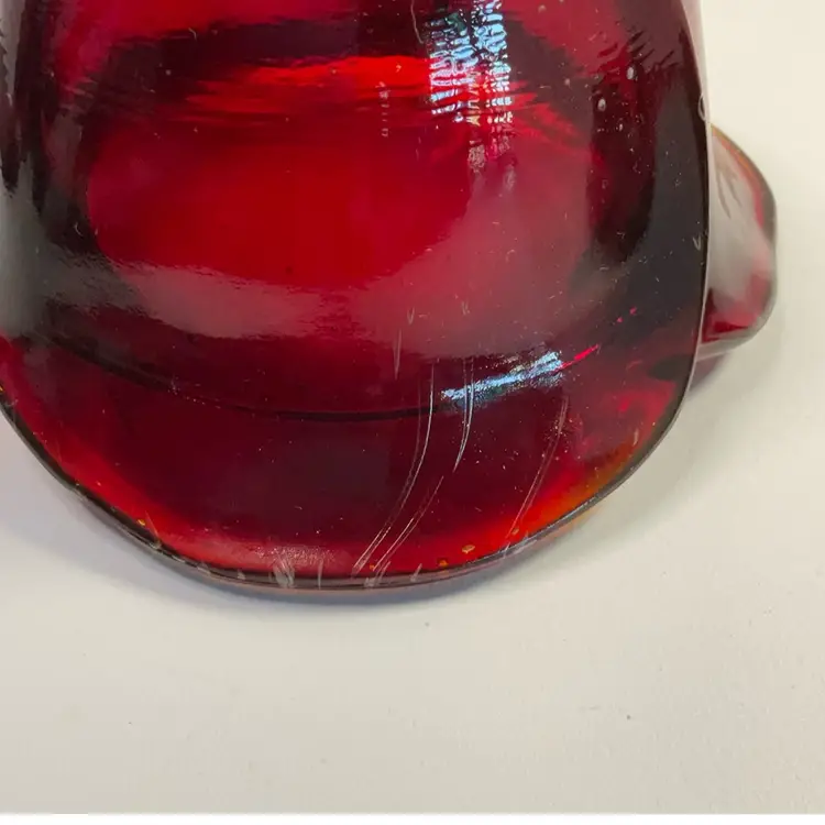 As shown. No chips or cracks. Has bubbles and straw marks. Glows under UV light. 4 inches tall. 5.5 inches wide.