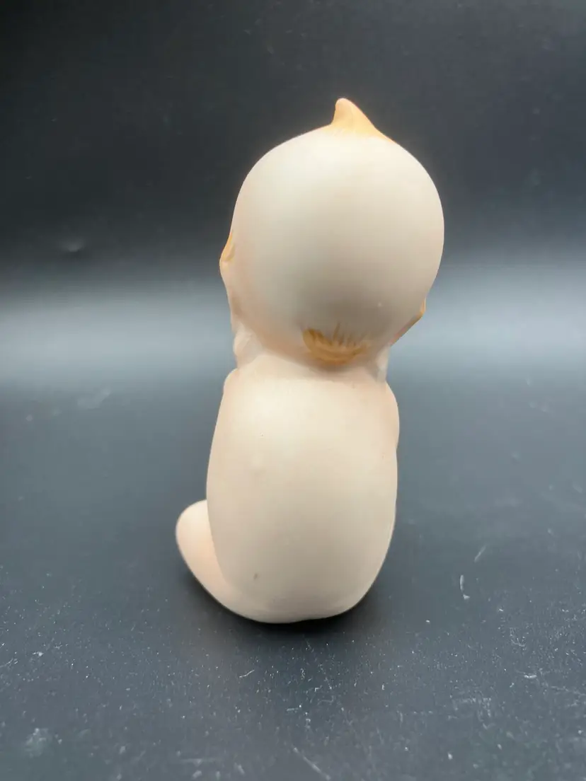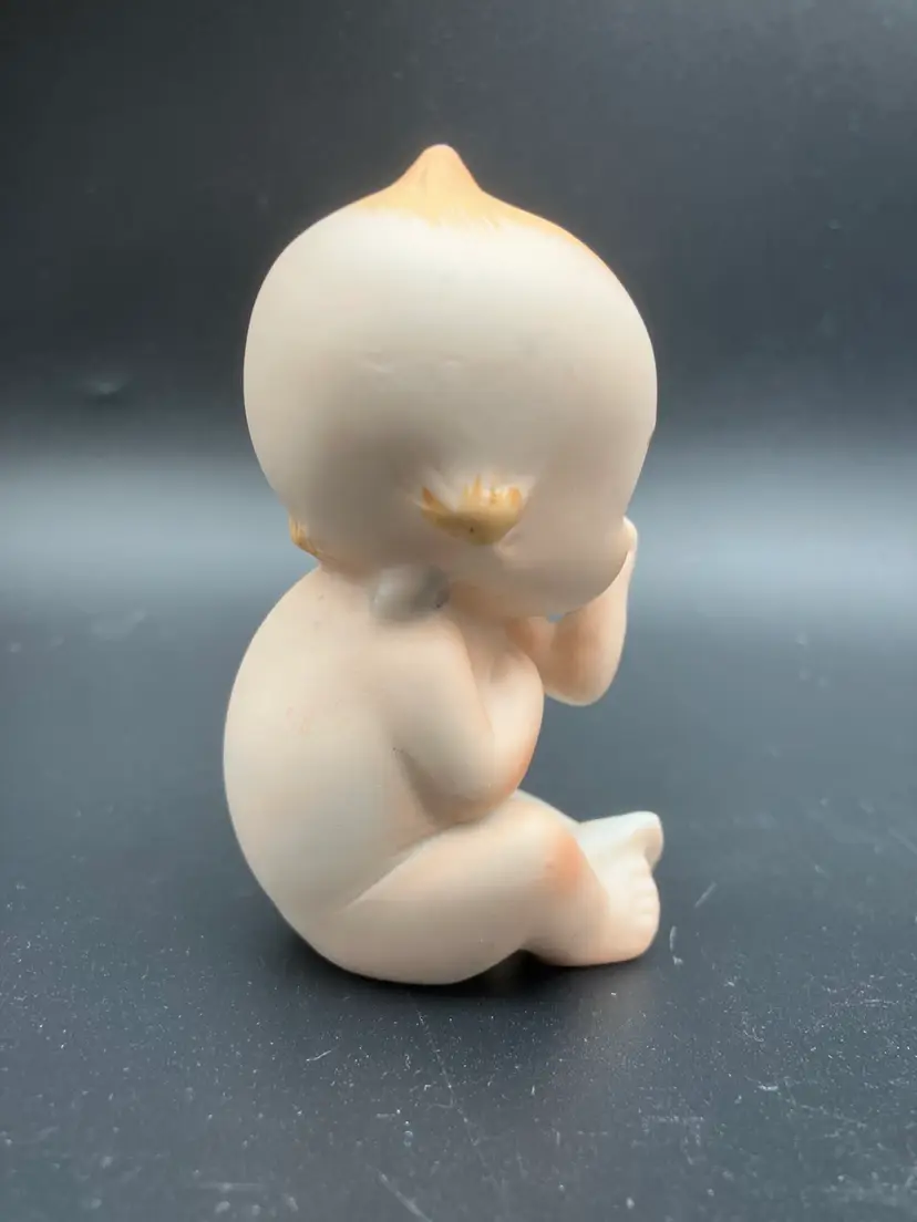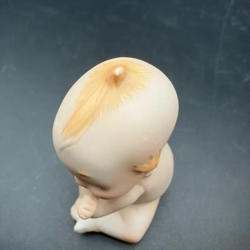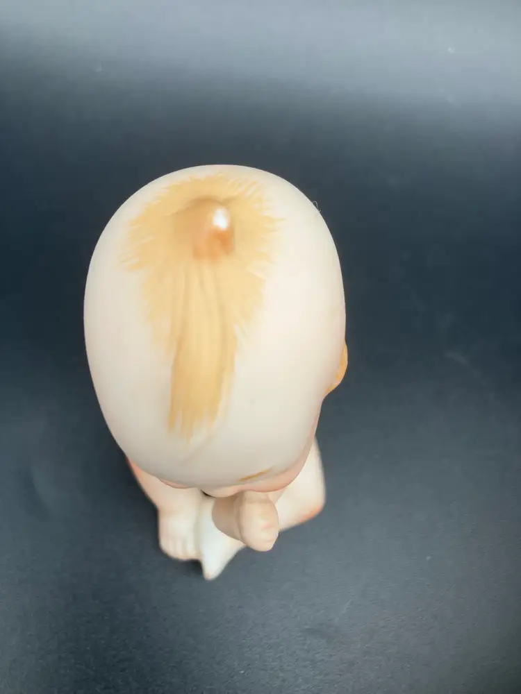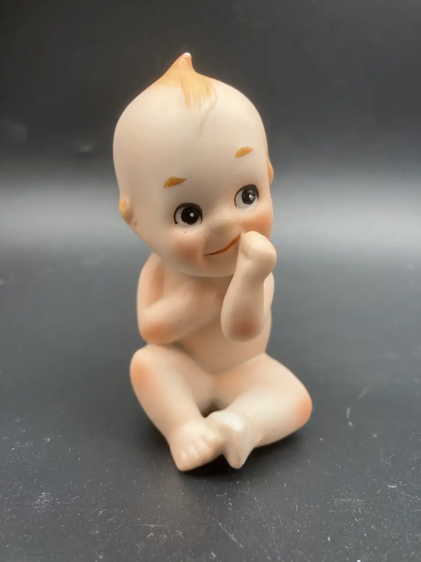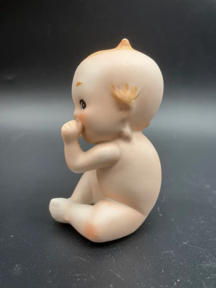 Adorable Lefton Porcelain Kewpie sucking thumb. Measures 3.25” tall by 1.875” deep and 1.5” wide. He’s in good condition with some paint wear to the top of his/her cowlick. See pics.