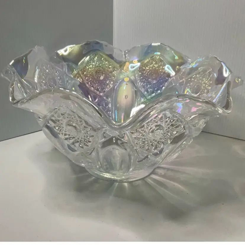 As shown. No chips or cracks. May show straw marks. 5.25 inches tall. 10 inches across top
