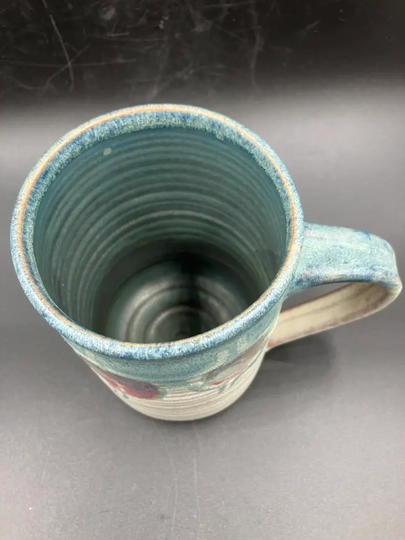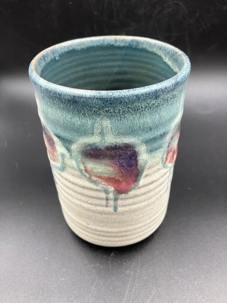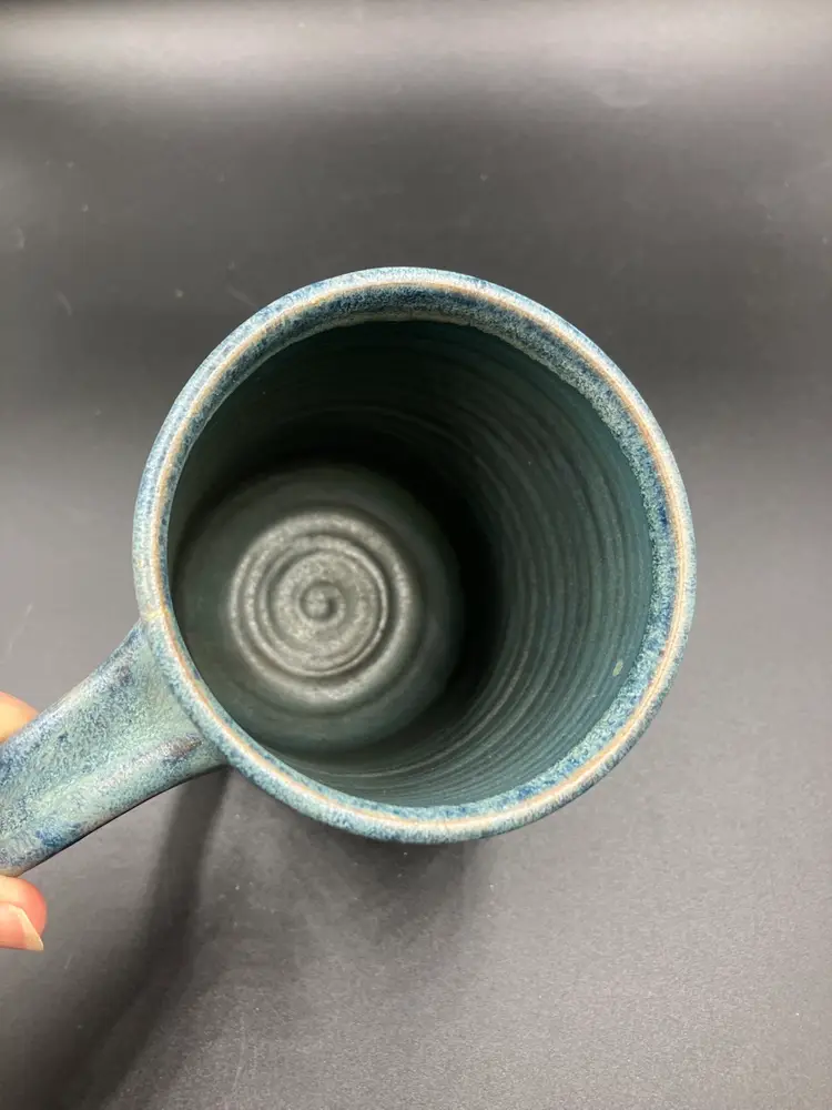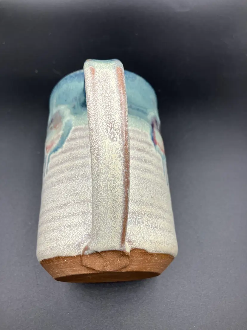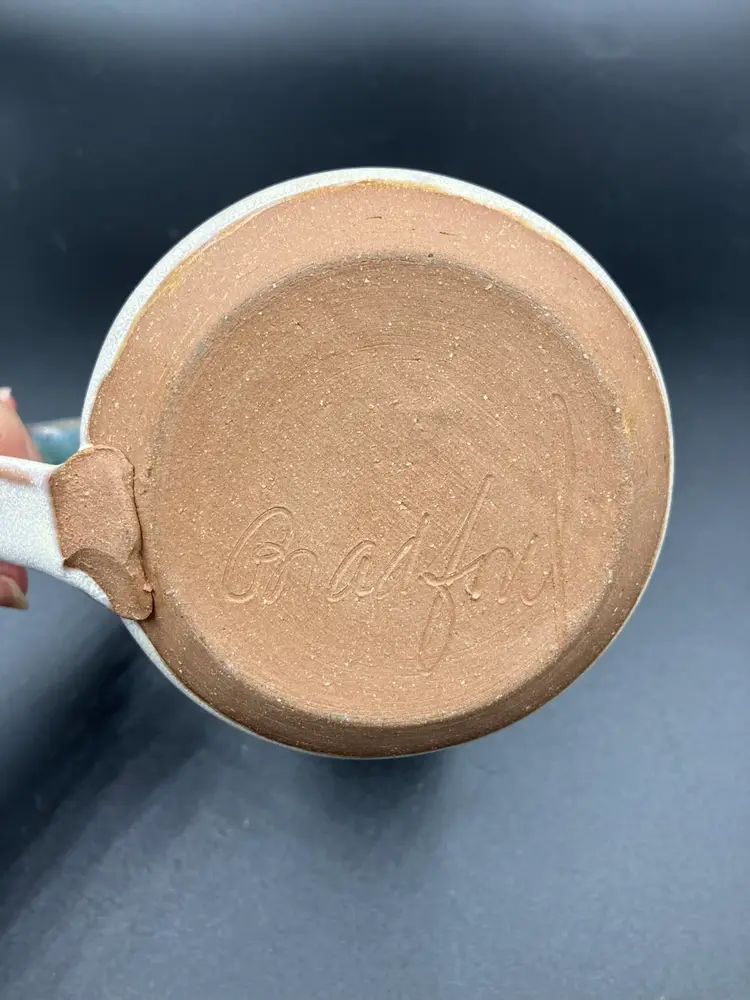 Excellent condition. Measures 5.25” tall by 3.375” diameter and 5.375” with handle. DON BRADFORD . retired teacher and potter at Rockland Centyer for the Arts NY