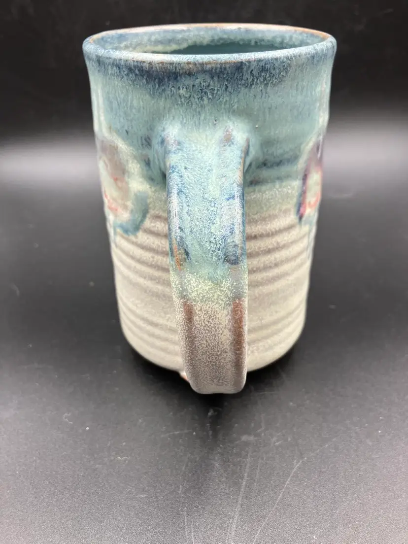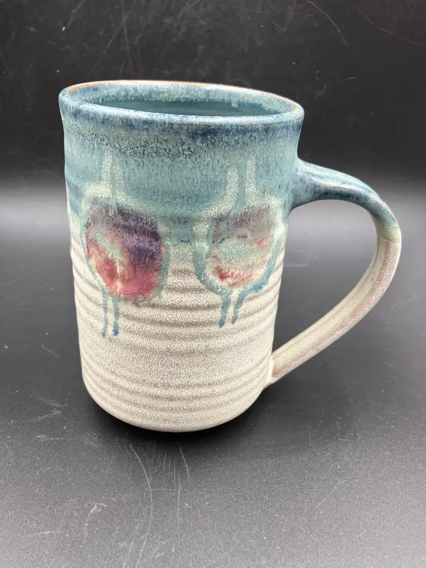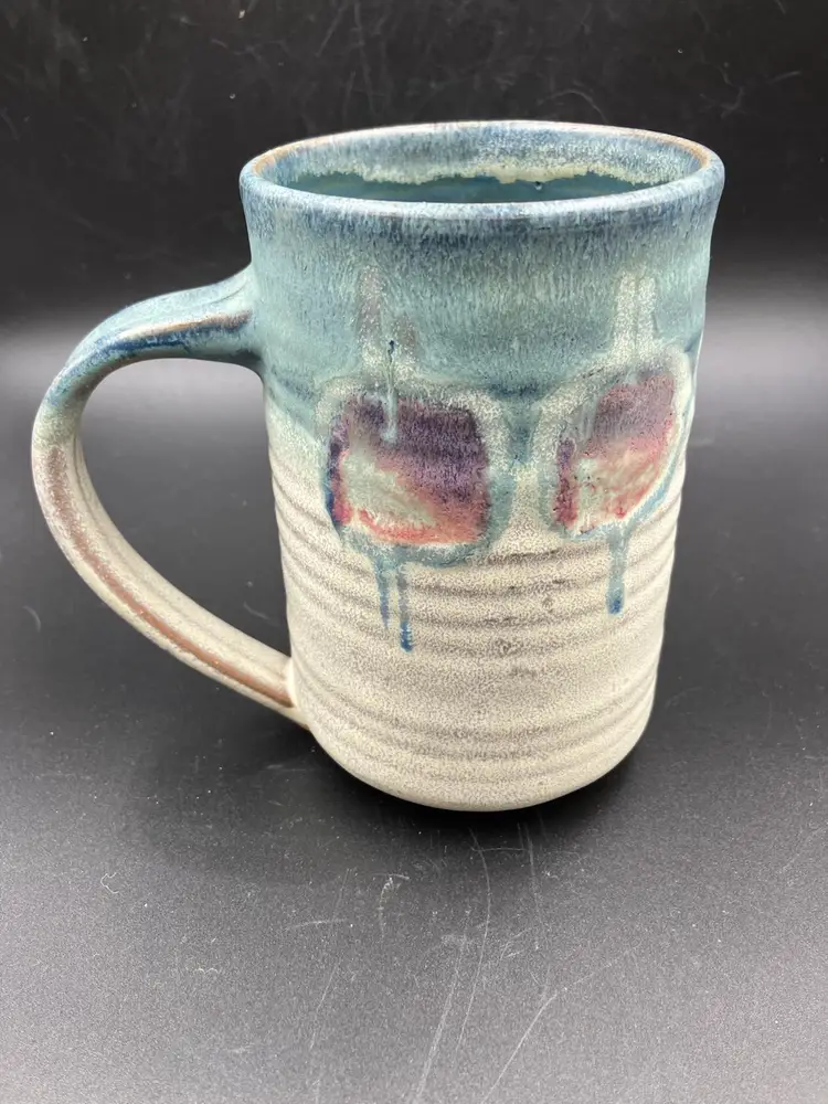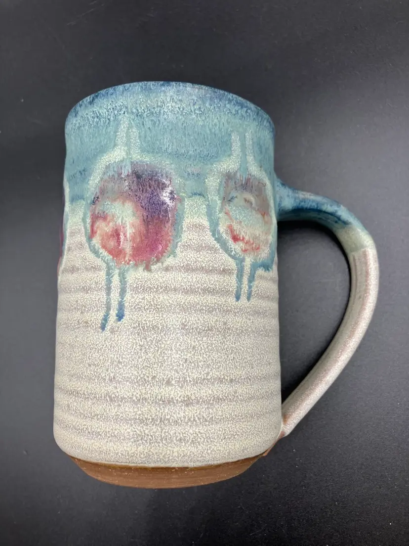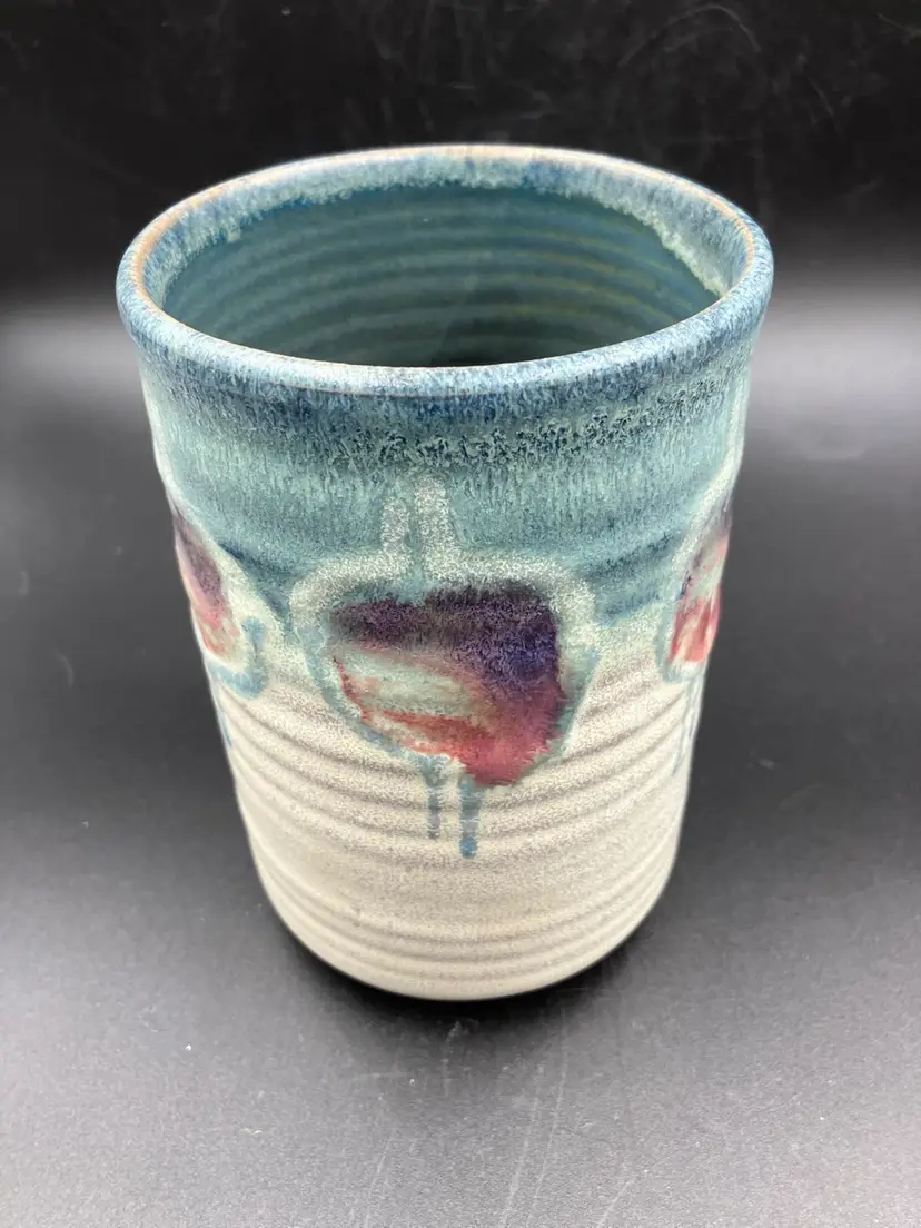 Excellent condition. Measures 5.25” tall by 3.375” diameter and 5.375” with handle. DON BRADFORD . retired teacher and potter at Rockland Centyer for the Arts NY