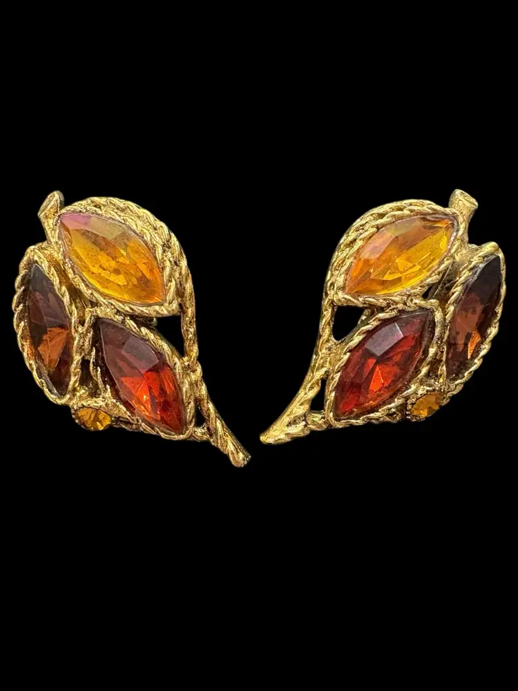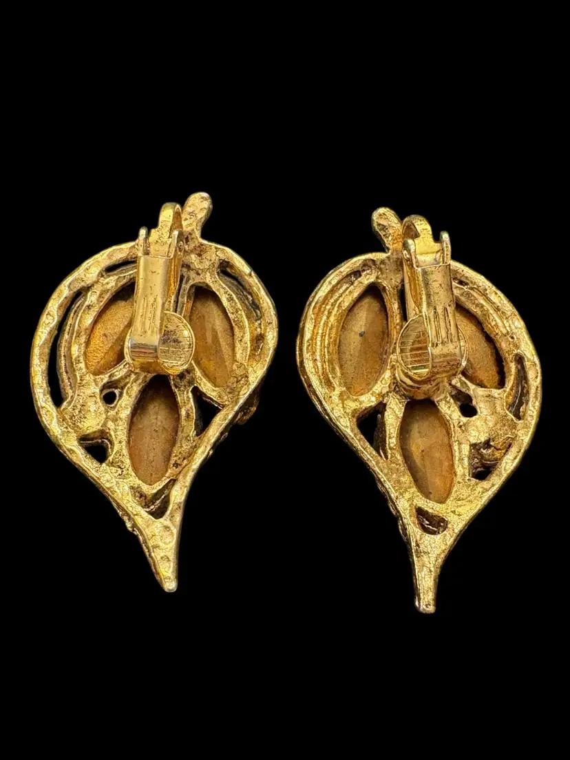 Brooch is 2in, earrings are clip ons approximately 1.5in