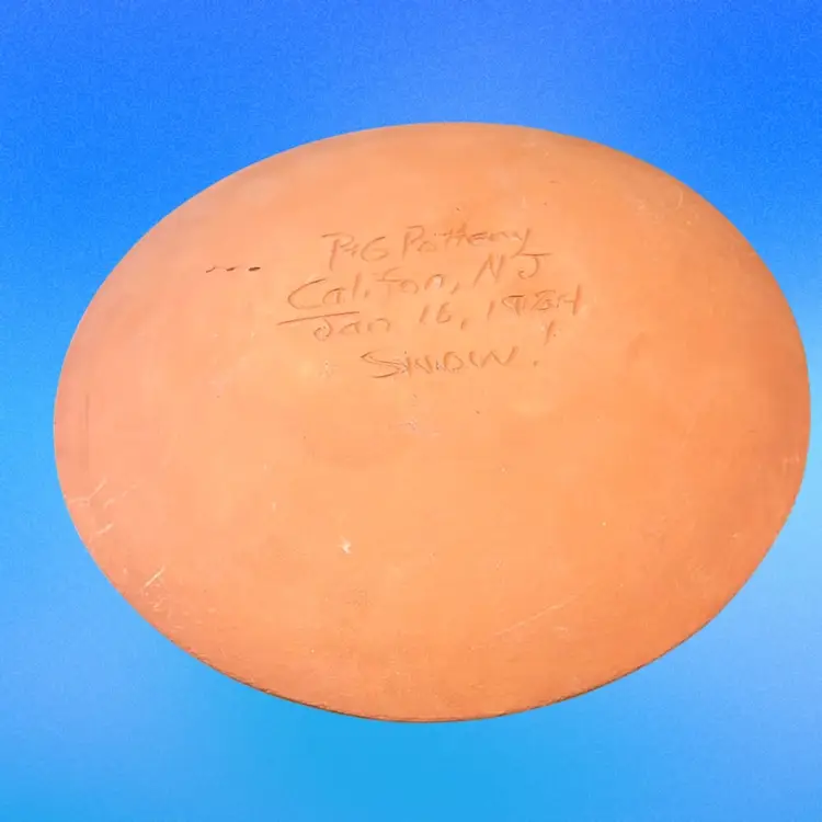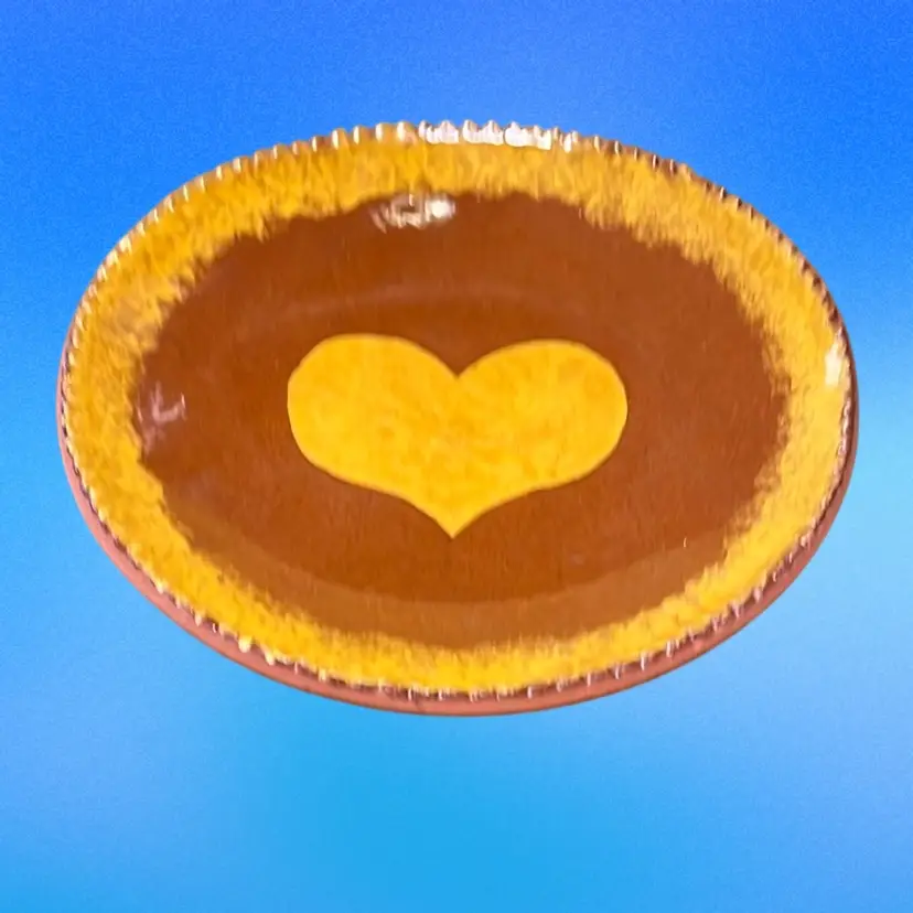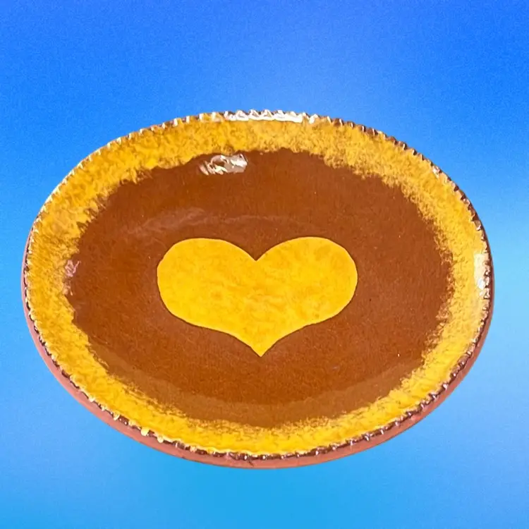26. Primitive Folk Art P.&G Pottery Heart Plate Red Wire