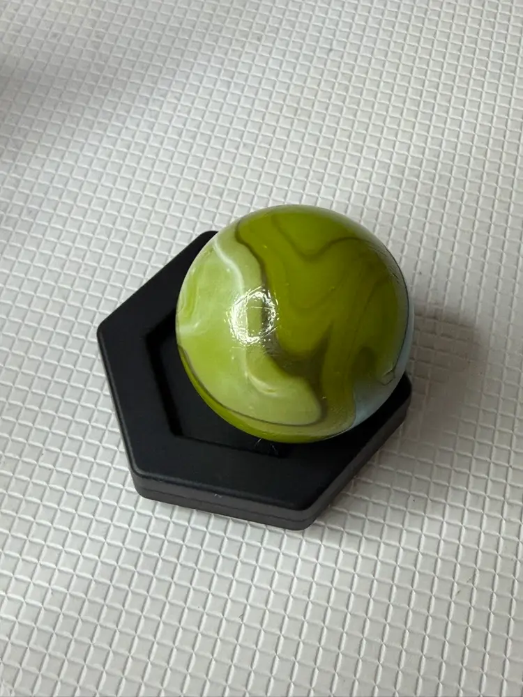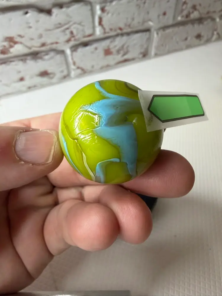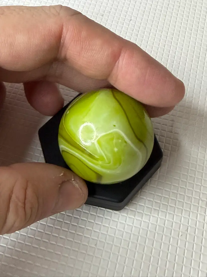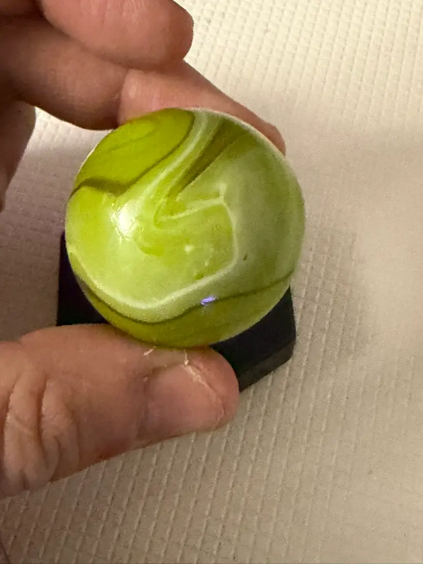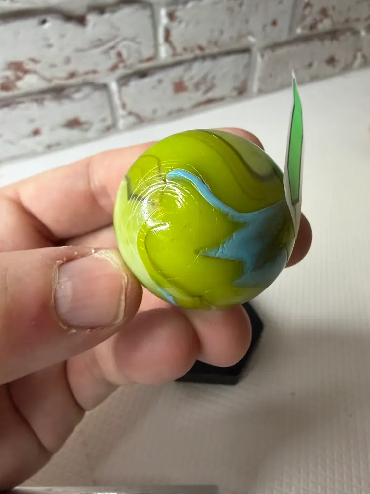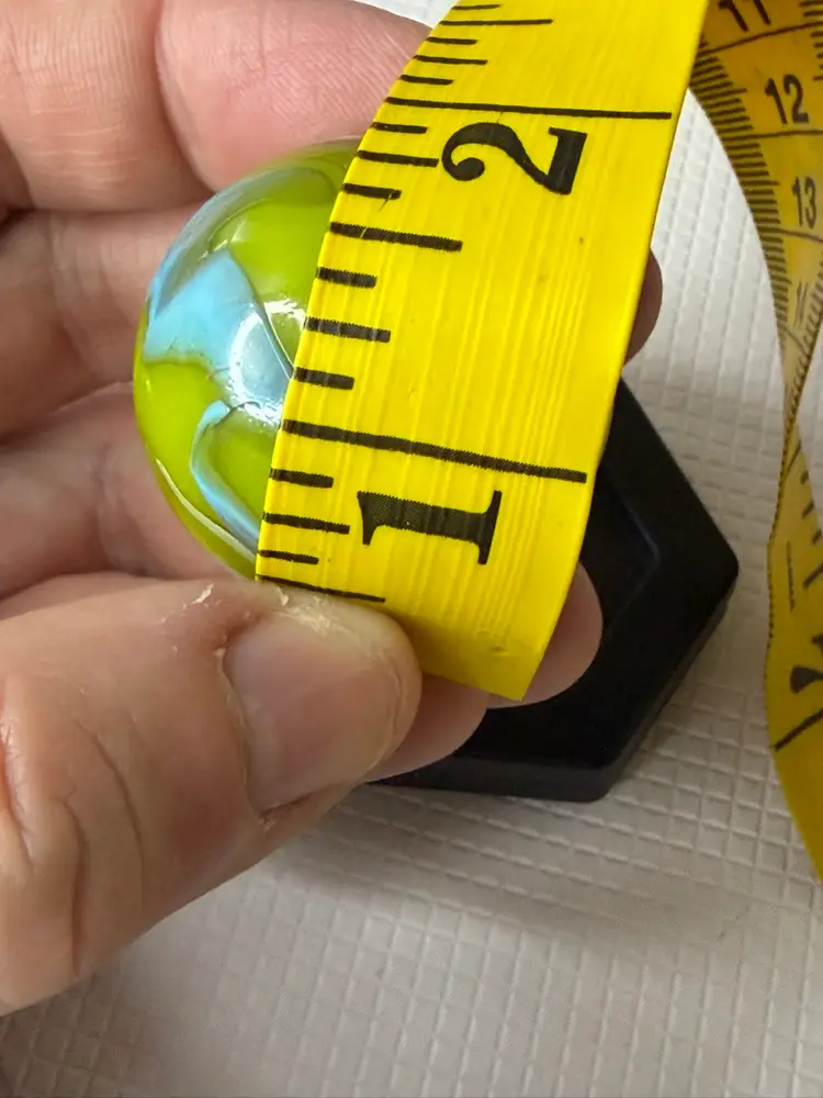 Feels a little rough by sticker measures 1.5” it not broken its like a clod soft roungess