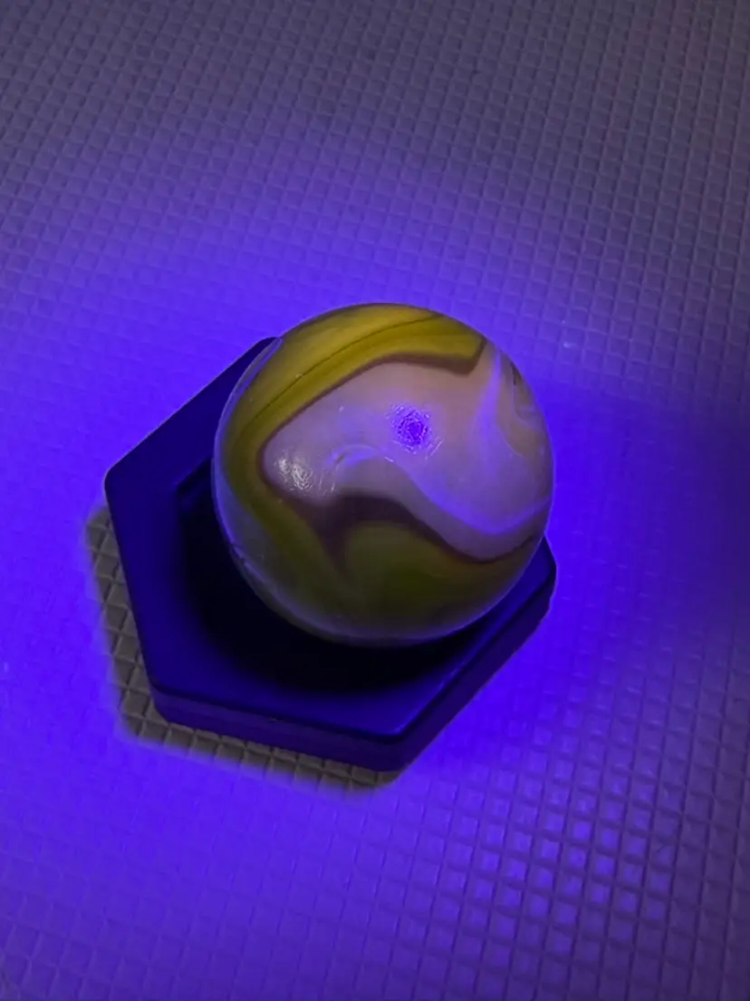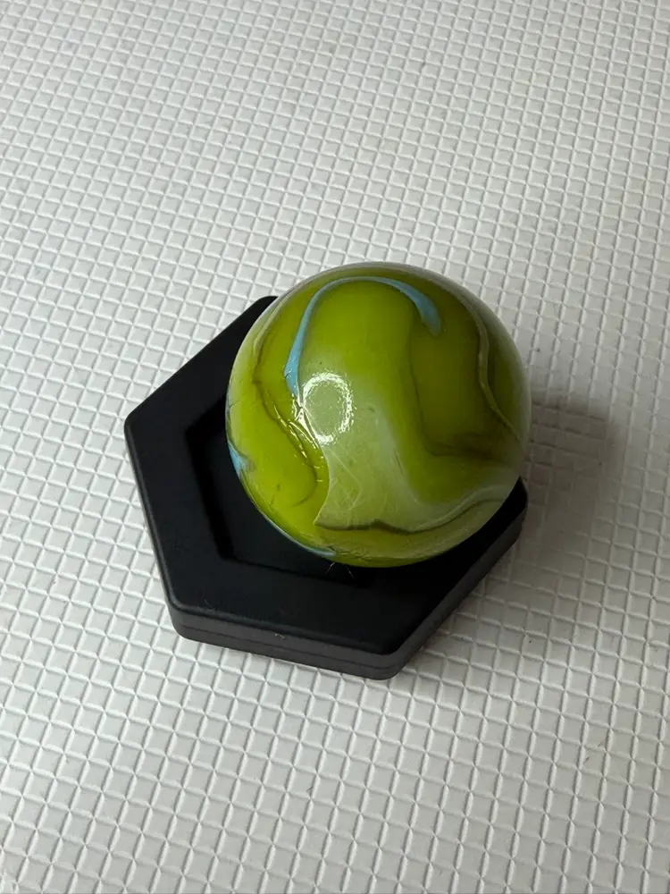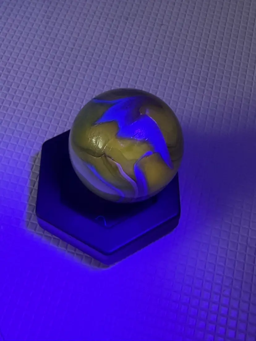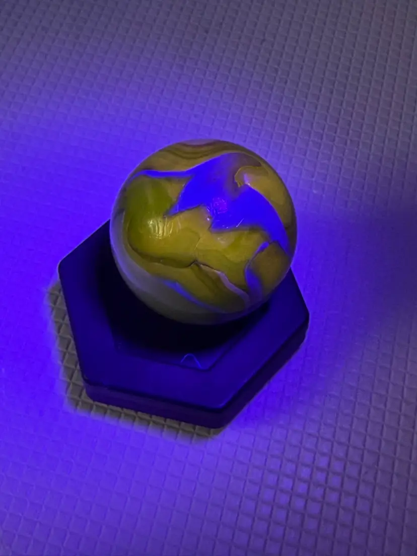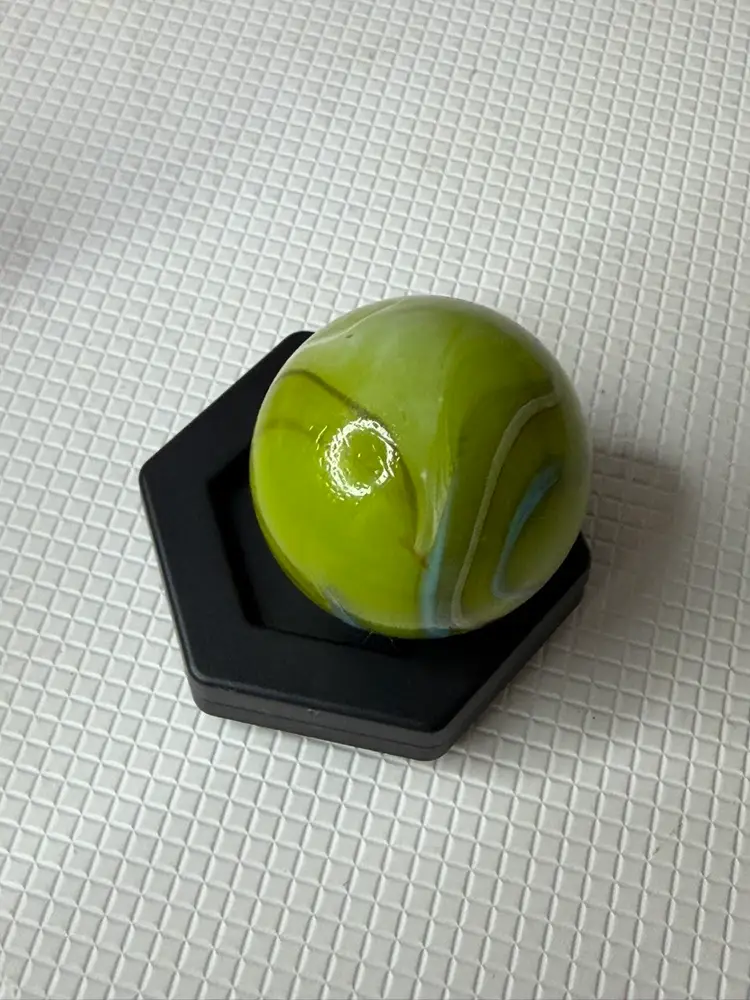 Feels a little rough by sticker measures 1.5” it not broken its like a clod soft roungess