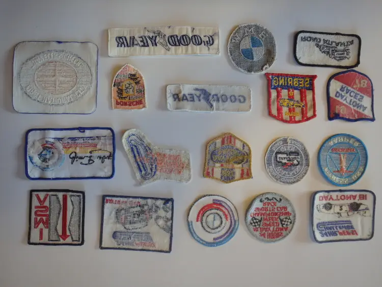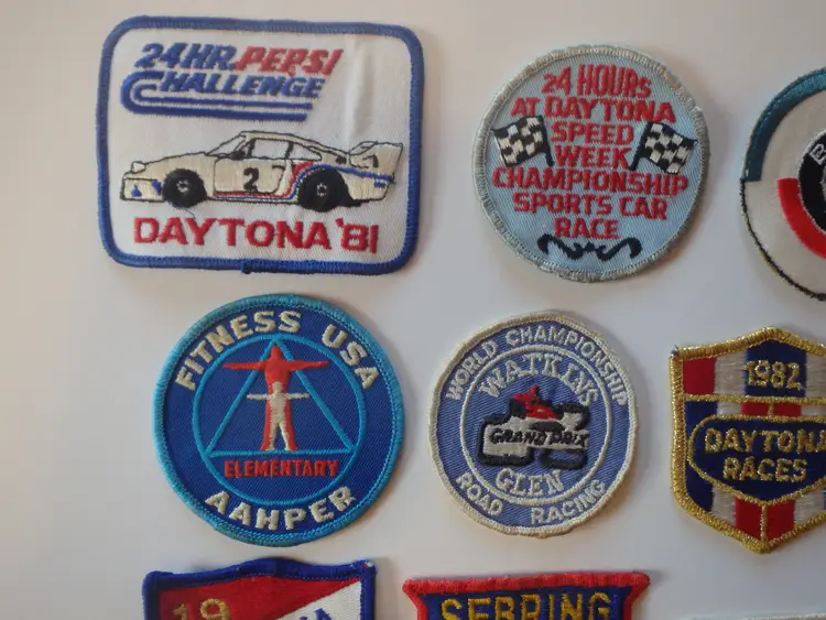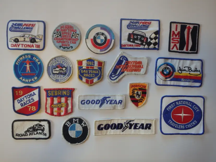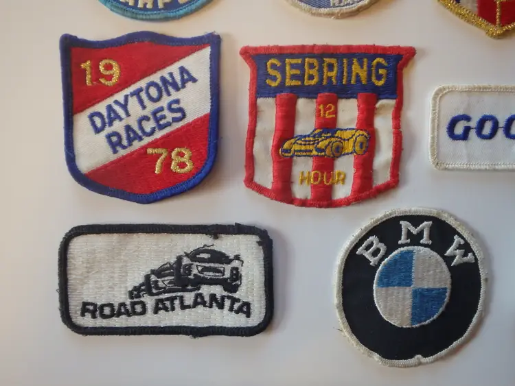 18 Vintage 70's 80's Used Racing Patches. All Used, Dirty - Need Cleaning, Plastic Backing Coming Off Some That Had It.