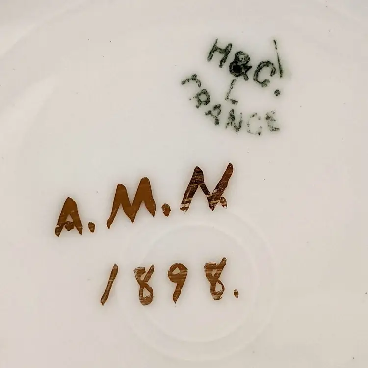 Origin: Limoges Signed By: A.M.N. Item Diameter: 3.75 in Year Manufactured: 1898 Brand: Haviland & Co. Item Height: 2.25 in Country/Region of Manufacture: France