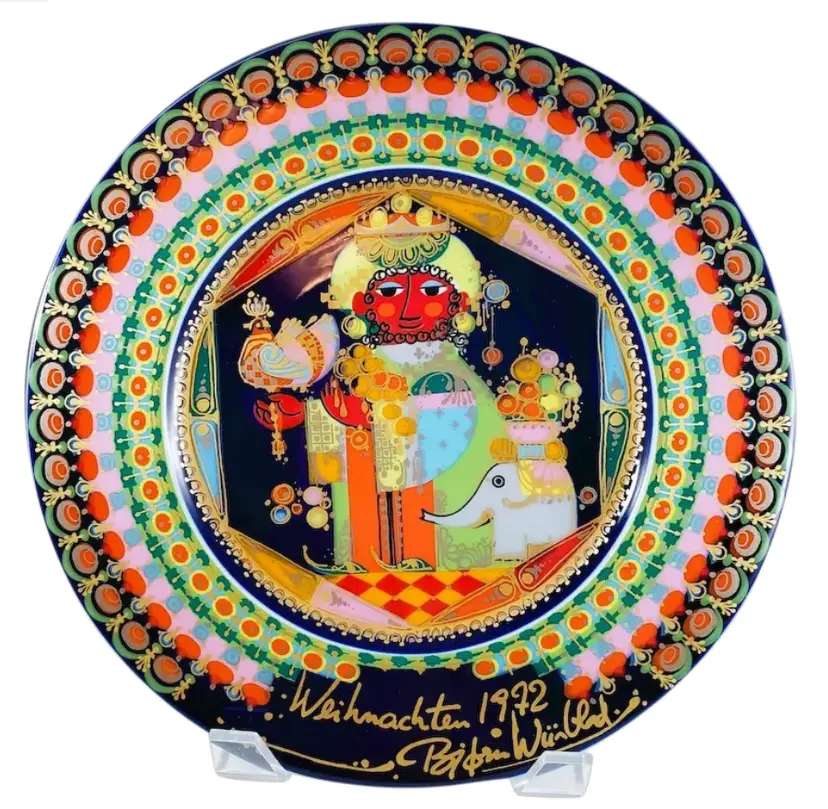 1972 Bjorn Wiinblad Christmas wall plate with built in wall hanger. Weihnachtsteller, Rosenthal porcelain Studio-Linie, made in Germany.