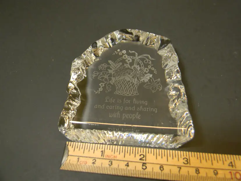 The Engraving says "Life is worth living and caring and sharing with people you love" 1976 Hallmark No chips or cracks used condition see photos The difference in computer monitors actual colors may vary slightly from those shown