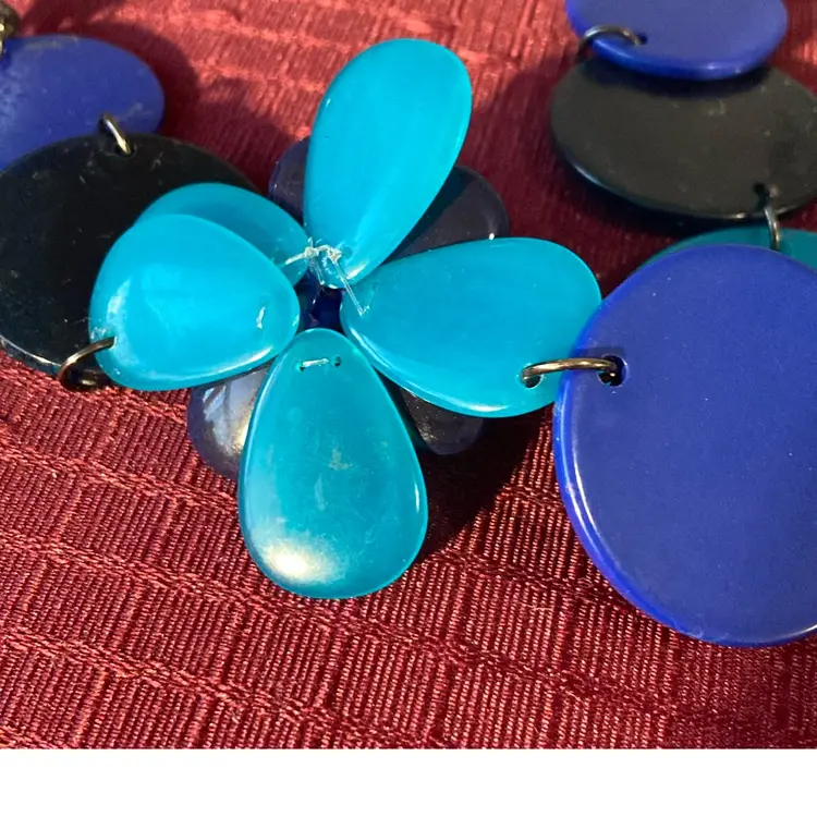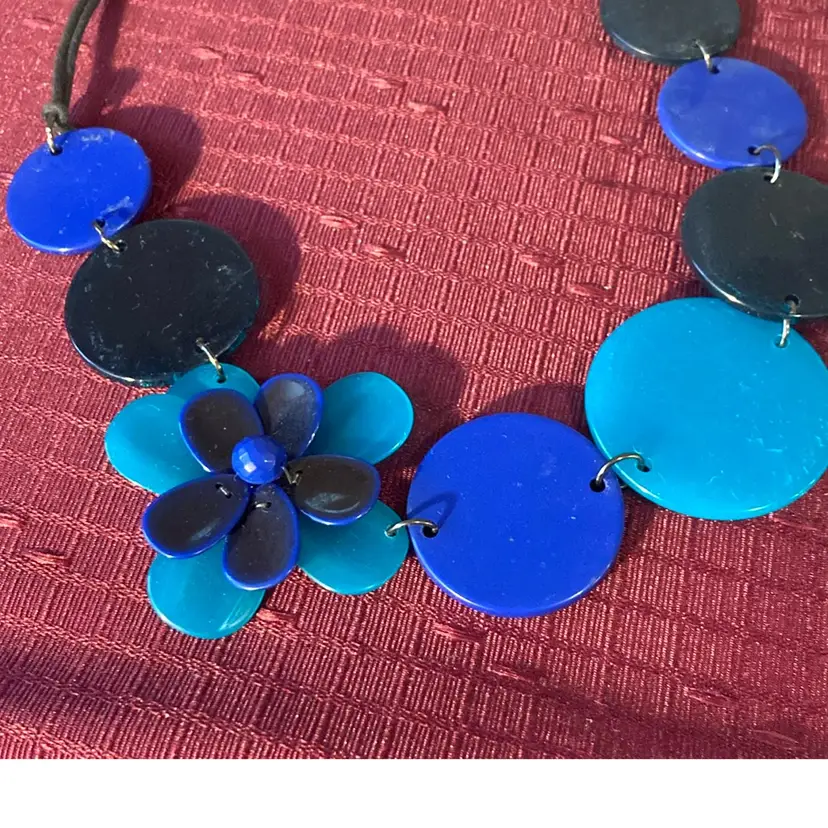 Unknown if this necklace is plastic or lucite, adorable and very unique fun addition to any outfit please see all photos