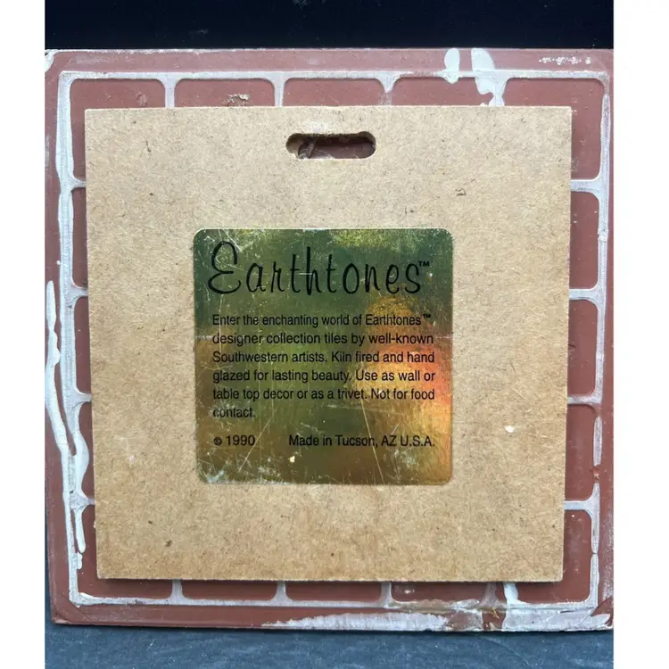 Beautiful Vintage Earthtones Southwestern Themed Art Tile. Woman In White Dress Beside A Cactus. Hand Made & Painted. Signed Tu-Oti. Designed By Gale Tu-Oti Tucson, AZ 1990 In excellent condition 6” x 6” For display or used as a trivet