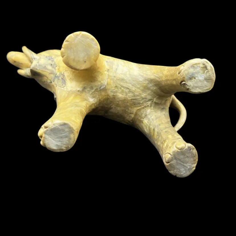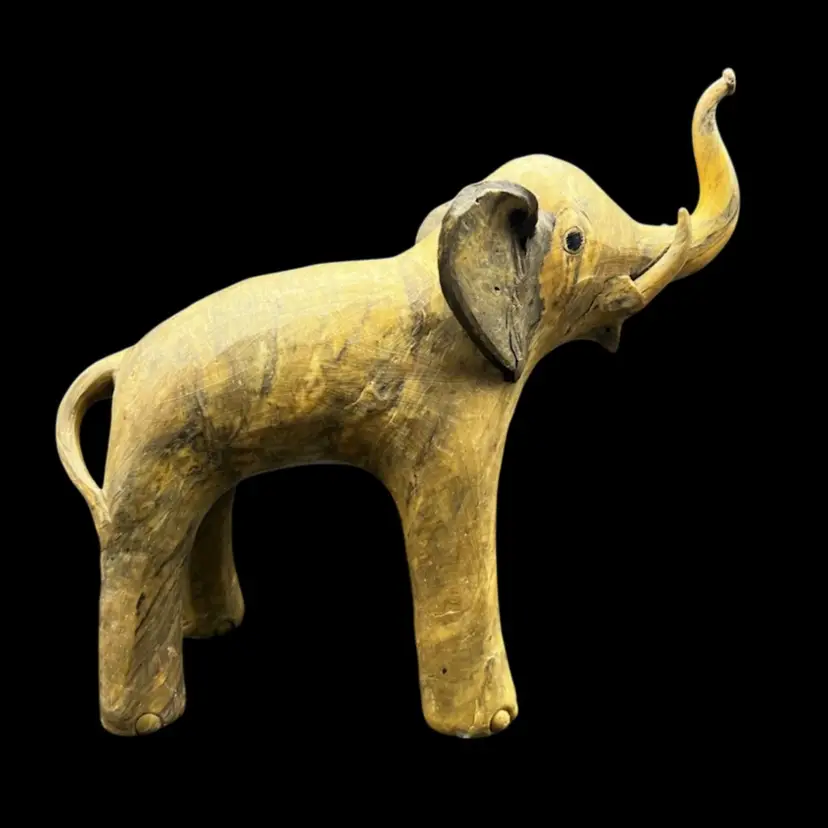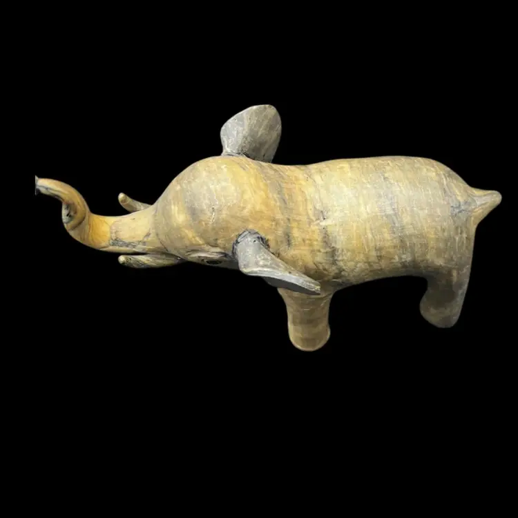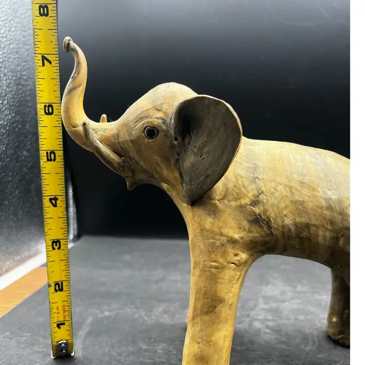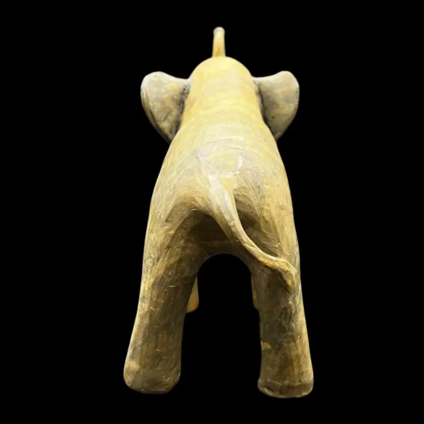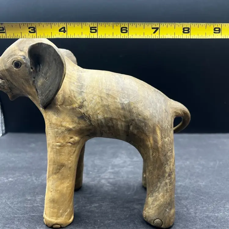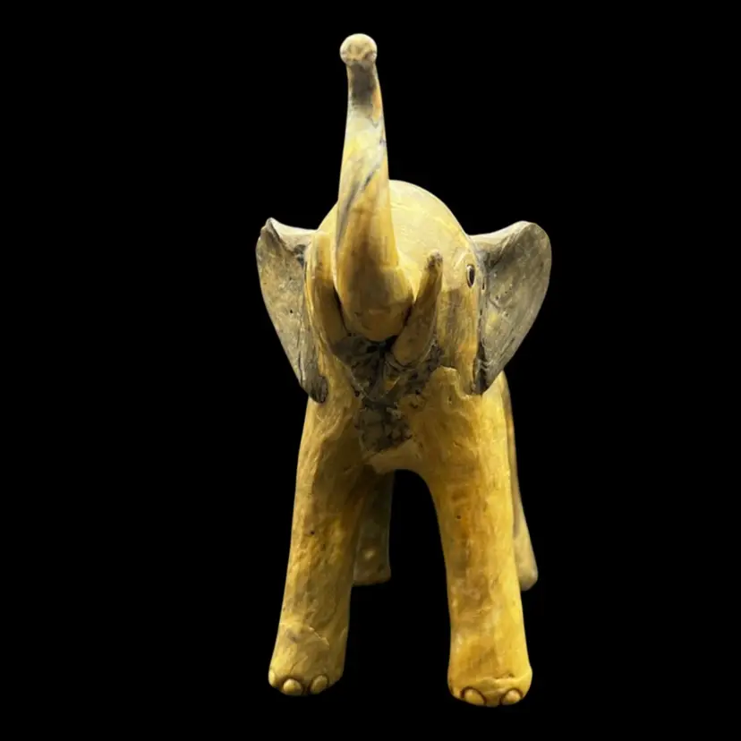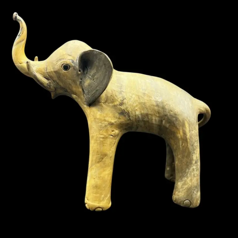 Vintage Crushed Oyster Shell Elephant Figurine Tusk Up. Marbled Look In very good condition 7 1/2” tall x 8 1/2” long