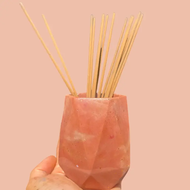 Handboard concrete vase, using various dye and paint for color. Drainage can be added upon request.