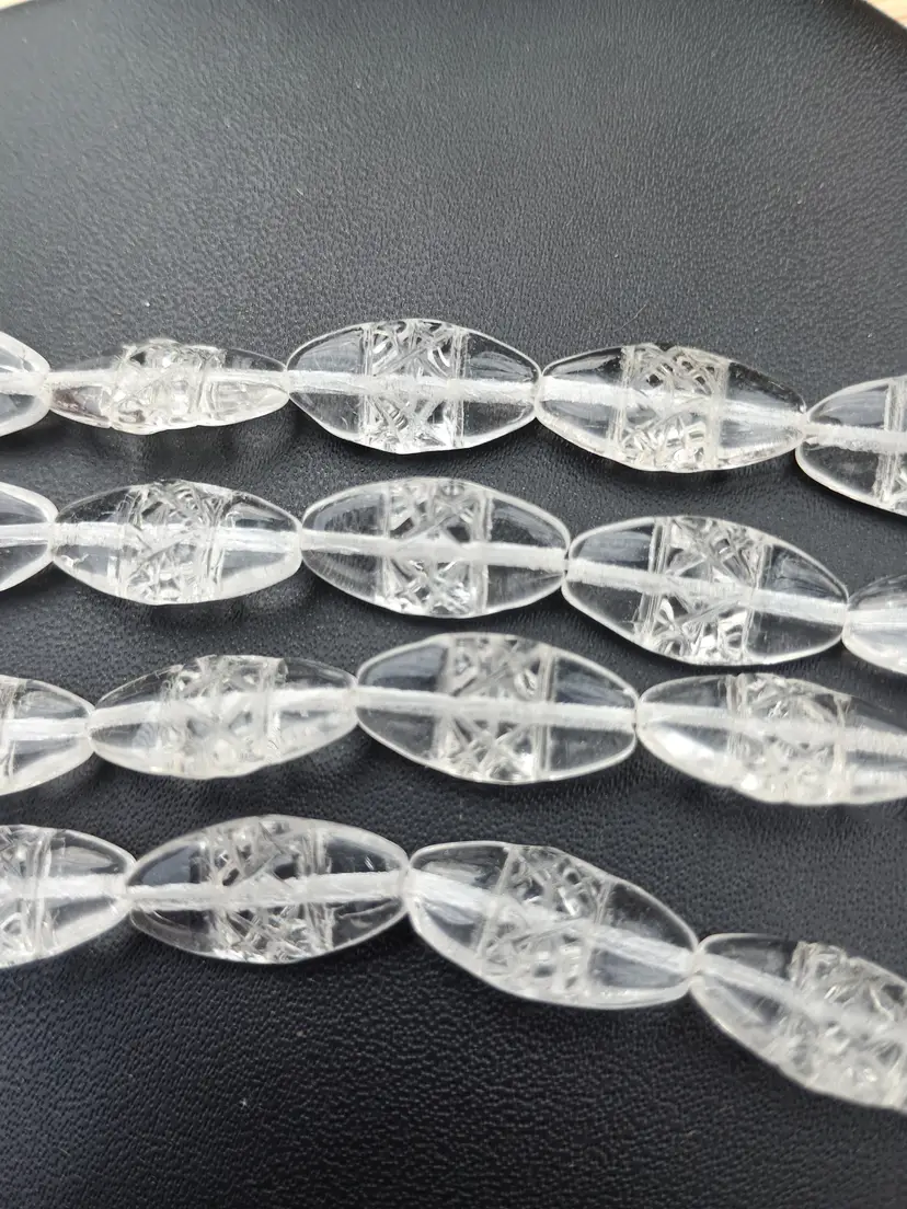 In this lot you will receive 48 vintage clear cut Czech glass beads. They are shaped like flat barrels or tubes. They are stunning. I have larger quantities available.