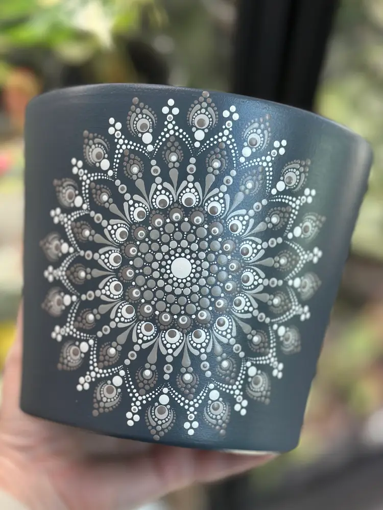 Terracotta pot with drainage (6.7 inch x 5.5 inch), hand painted and sealed with acrylic paint