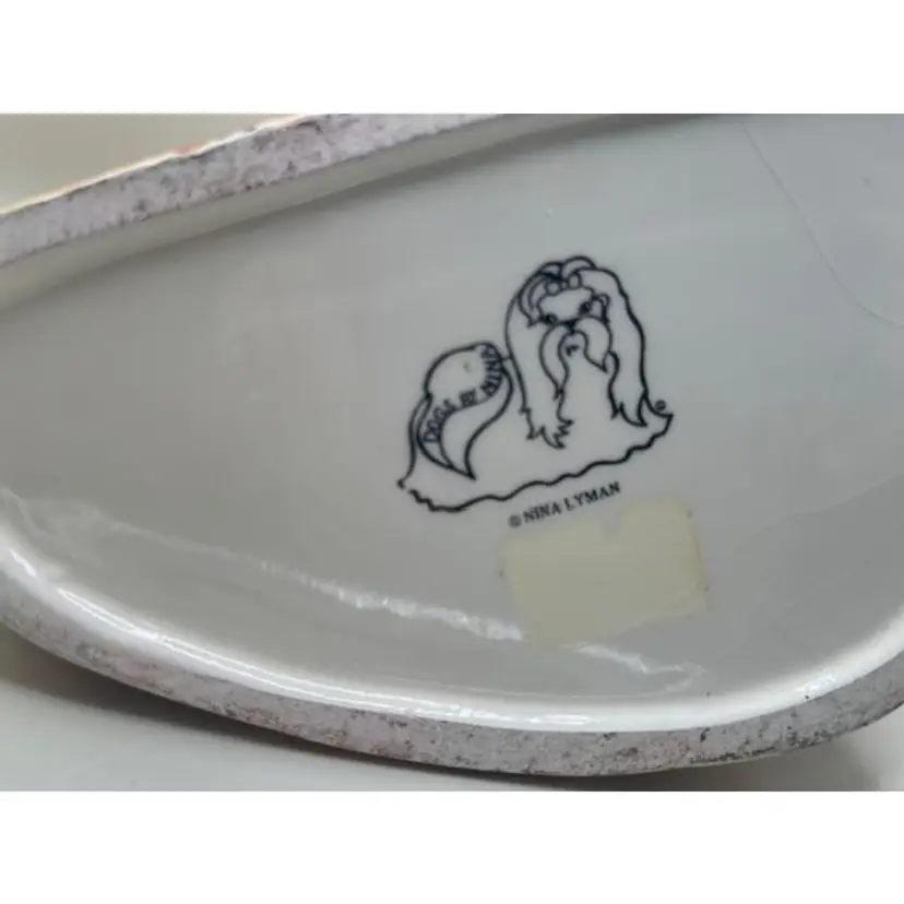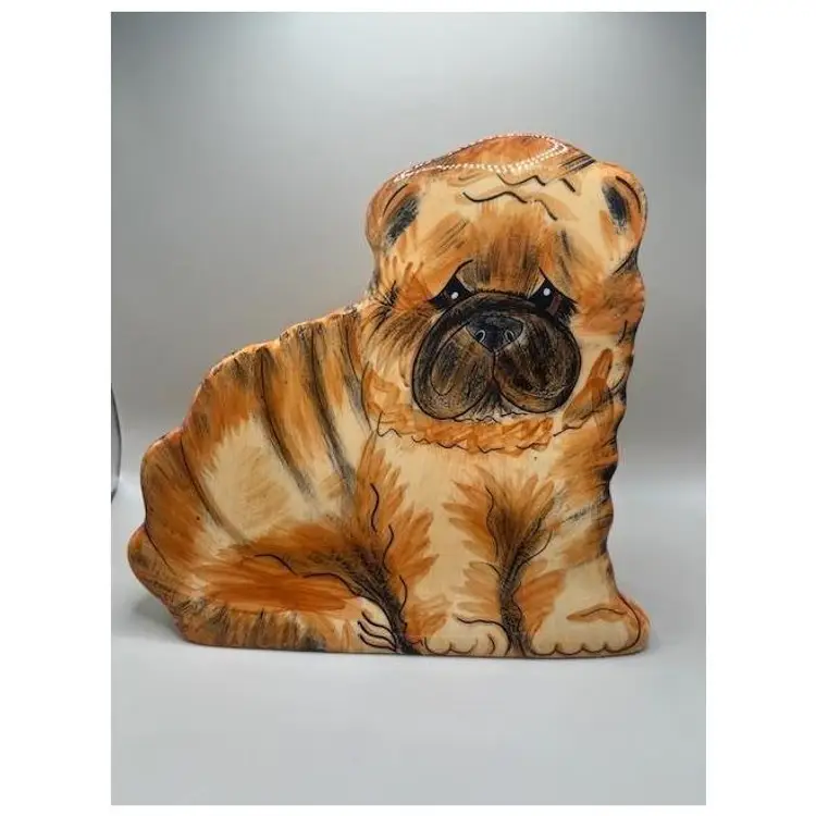 This adorable vintage shar pei is not just a pretty face; it's a functional piece that can use to hold your lovely flowers! Hand-painted with care, this ceramic pup has a lovely patina and minor crazing that only time can bestow. It's the perfect addition for any dog lover's collection or as a quirky touch to your home decor. Measures approximately 8 inches tall.