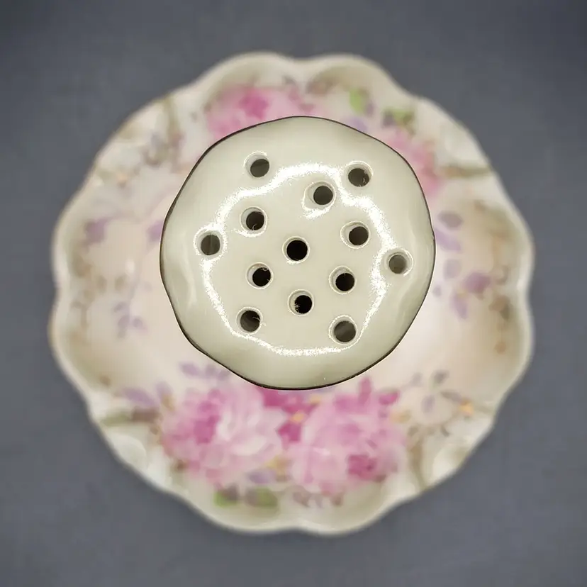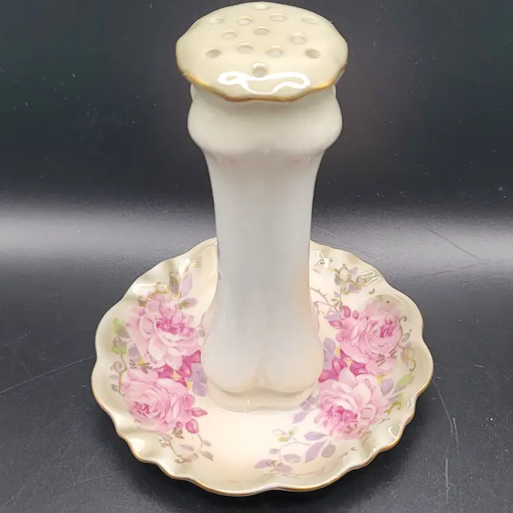 Very pretty floral hat pin holder in wonderful condition Stands approximately 5.5" tall