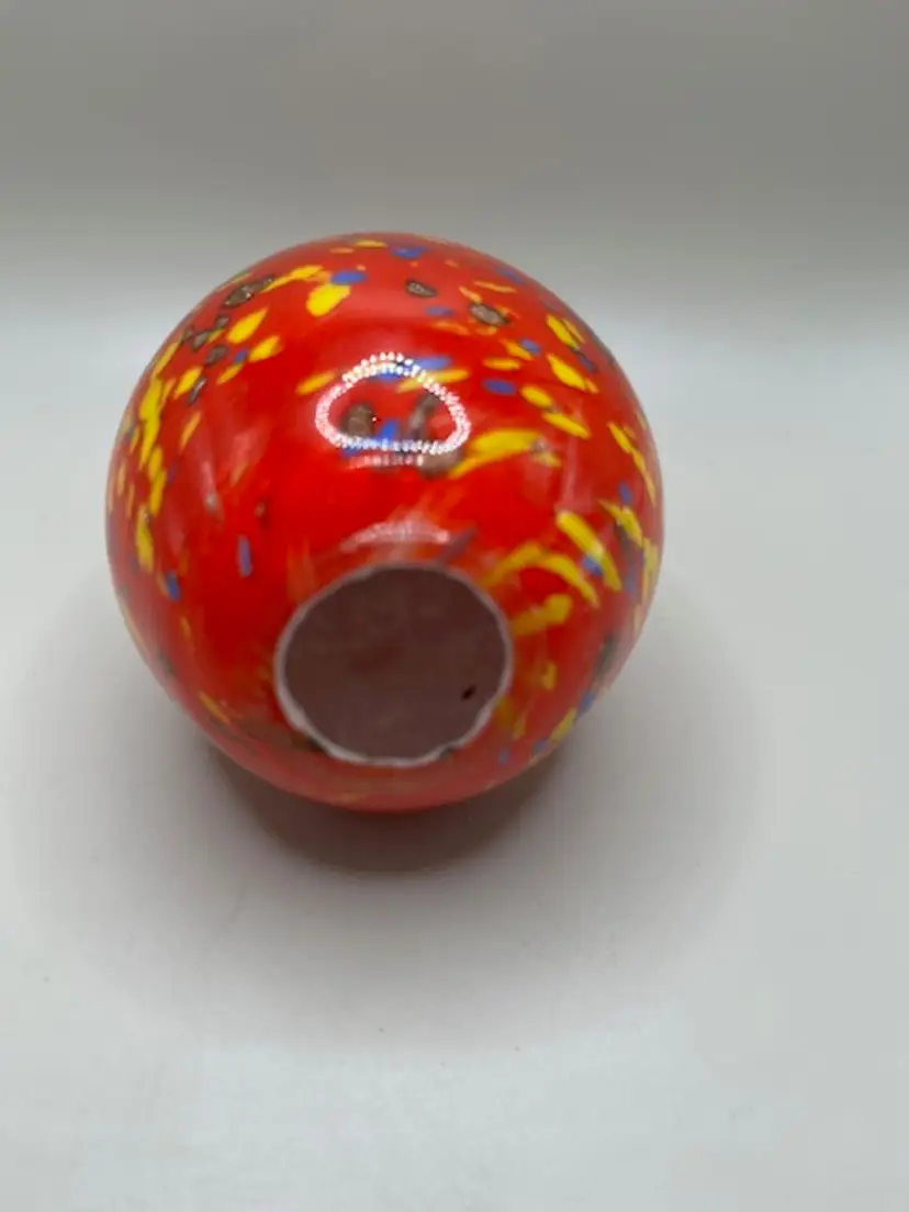 Measures 4.25 inches tall. Vibrant reddish-orange with multicolored speckles