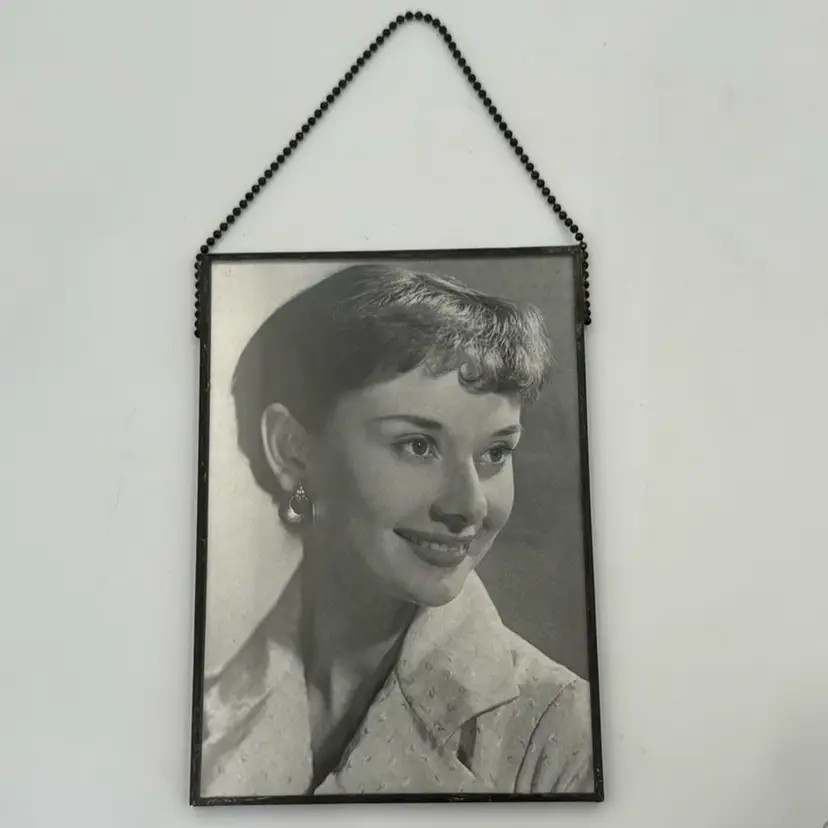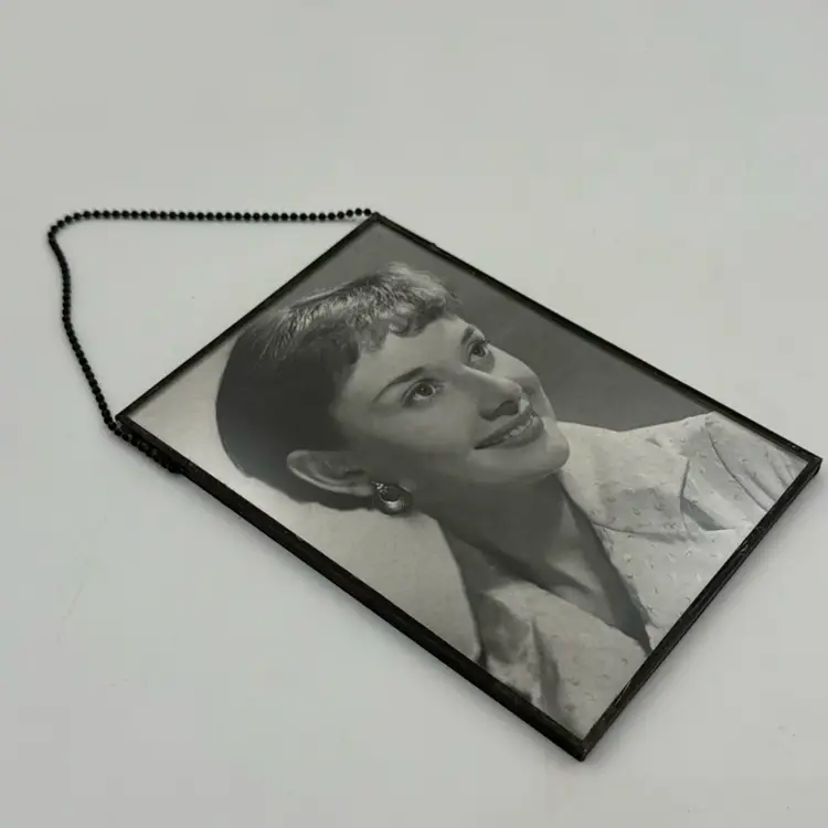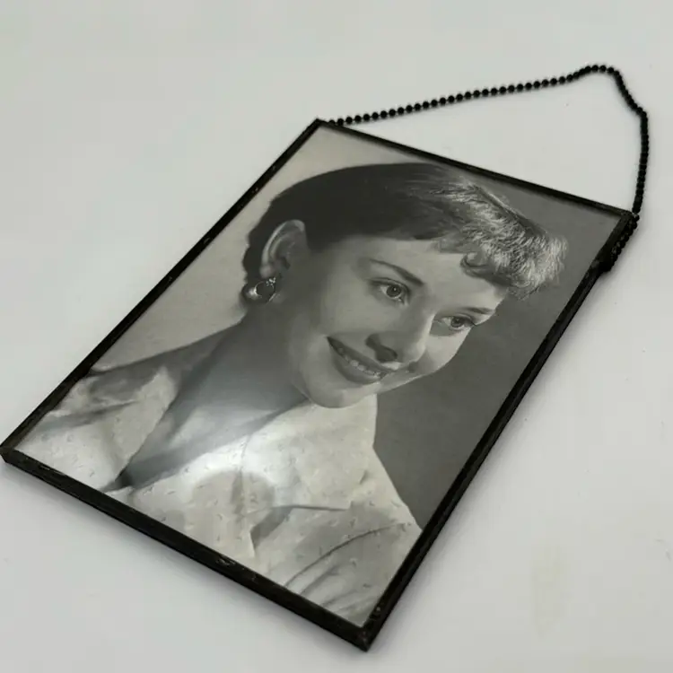 5.5”x 3.5”In wonderful condition no chips or cracks. In a metal frame