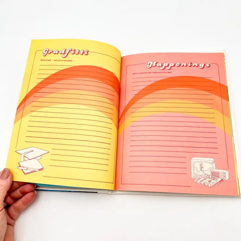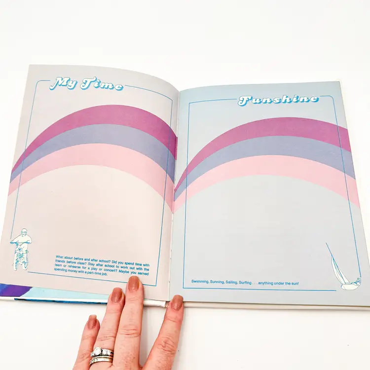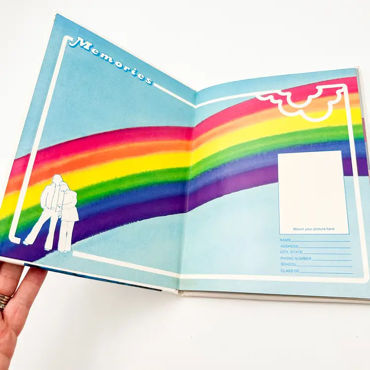 Very good condition, some wear on exterior, one page with one line of writing, see all photos Feature rainbow theme interior