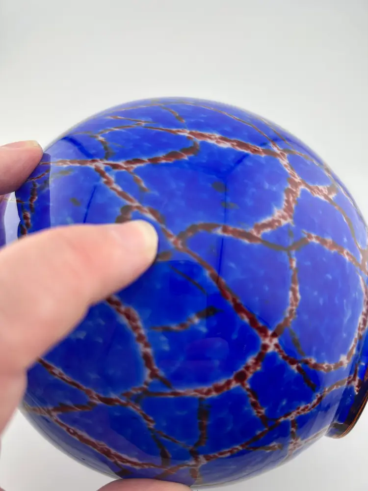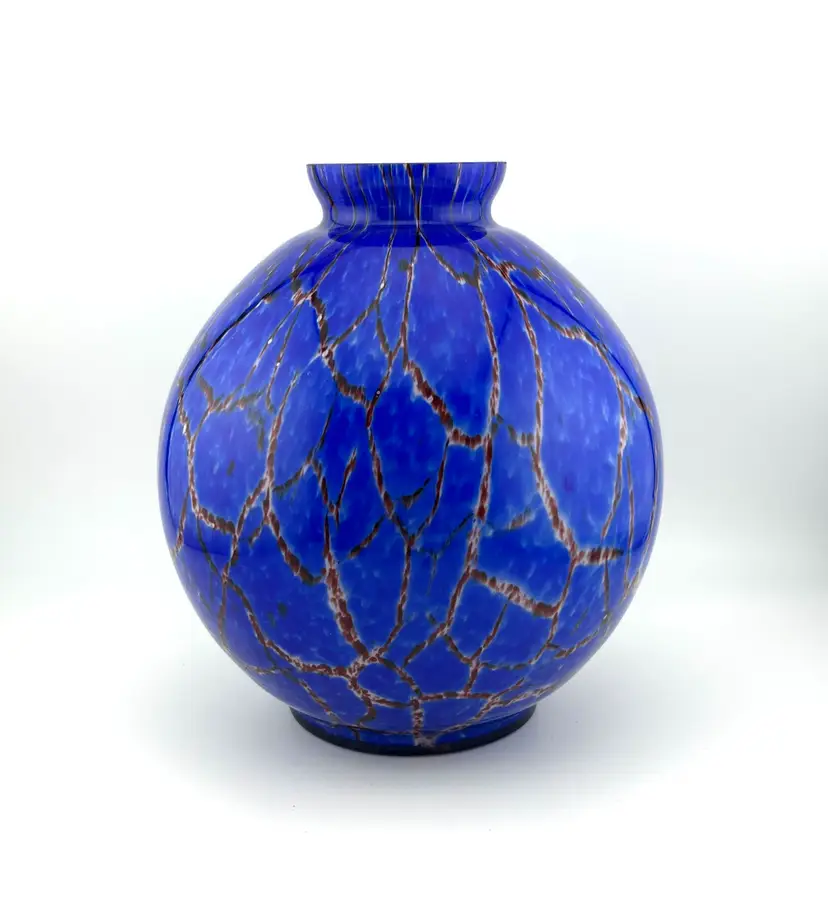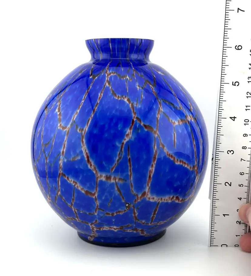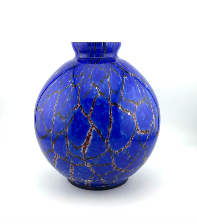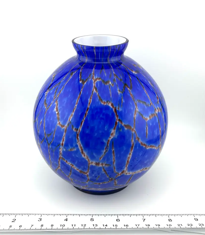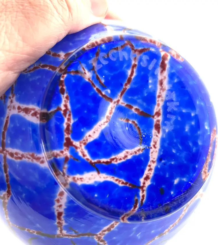 No chips or cracks. Has a few scuffs. Due to the vibrancy of color, they are very hard to see and photograph. The Czechoslovakia stamp on the bottom and the shape make me think it’s possibly Wilhelm Kralik. Super cool! Bohemian Tradition: Produced in the Bohemia and Silesia regions (now the Czech Republic), these vases are known for high quality and, historically, for having brilliant color palettes that remain intense over time. Art Deco and Mid-Century Modern: 1920s-30s pieces often feature "confetti" spatter, intense red/yellow/orange colors, or frosted finishes with polished highlights. In the 1960s/70s, many designs moved toward organic, abstract, and sculptural shapes. Techniques: Common methods include hand-cutting, engraving, molding, and applying glass to the surface. Some pieces, particularly from the 1920s-30s, may be signed with an acid-etched "Czechoslovakia