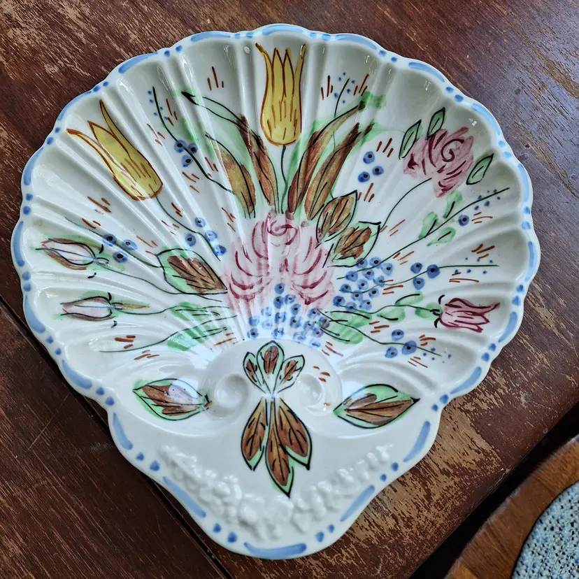 Vintage Blue Ridge Southern Potteries Deep Shell Dish. 9" by 9". Pattern is Nove/Nova Rose. No chips or cracks.