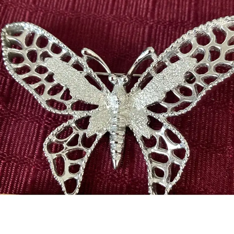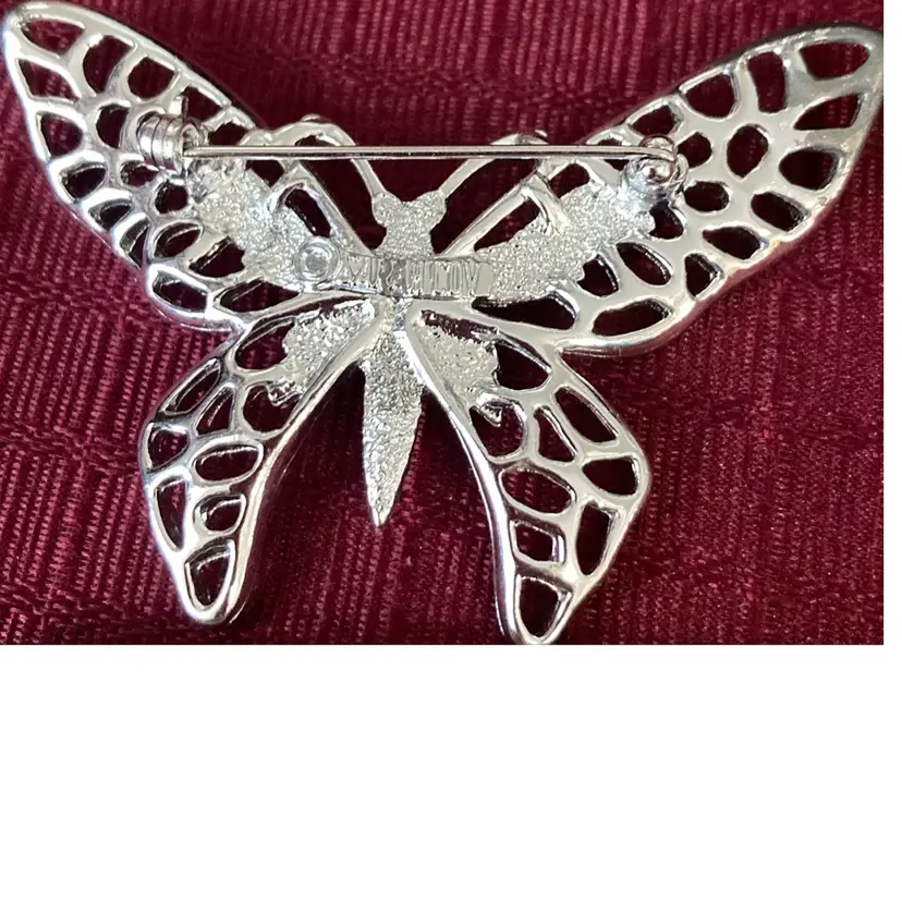 Vintage Silvertone butterfly brooch, Sarah Coventry marked on the back, Sarah Cov