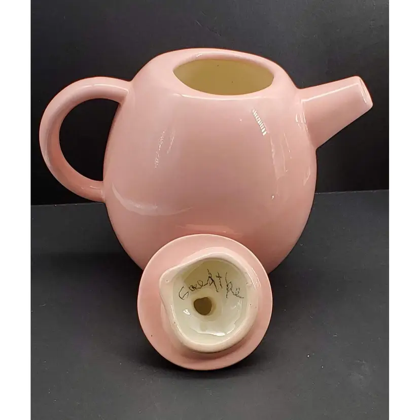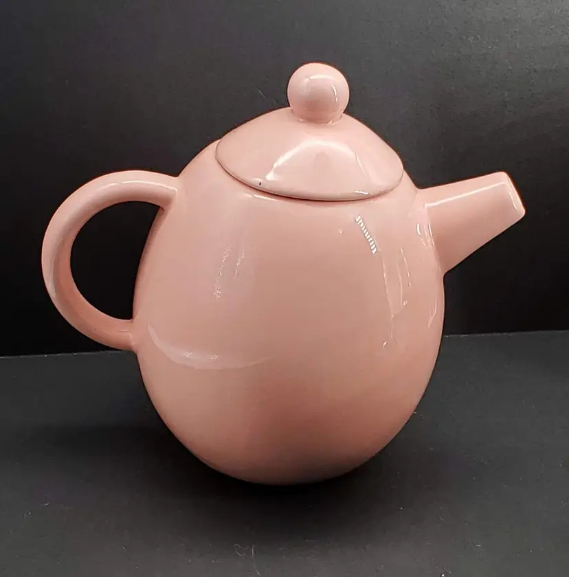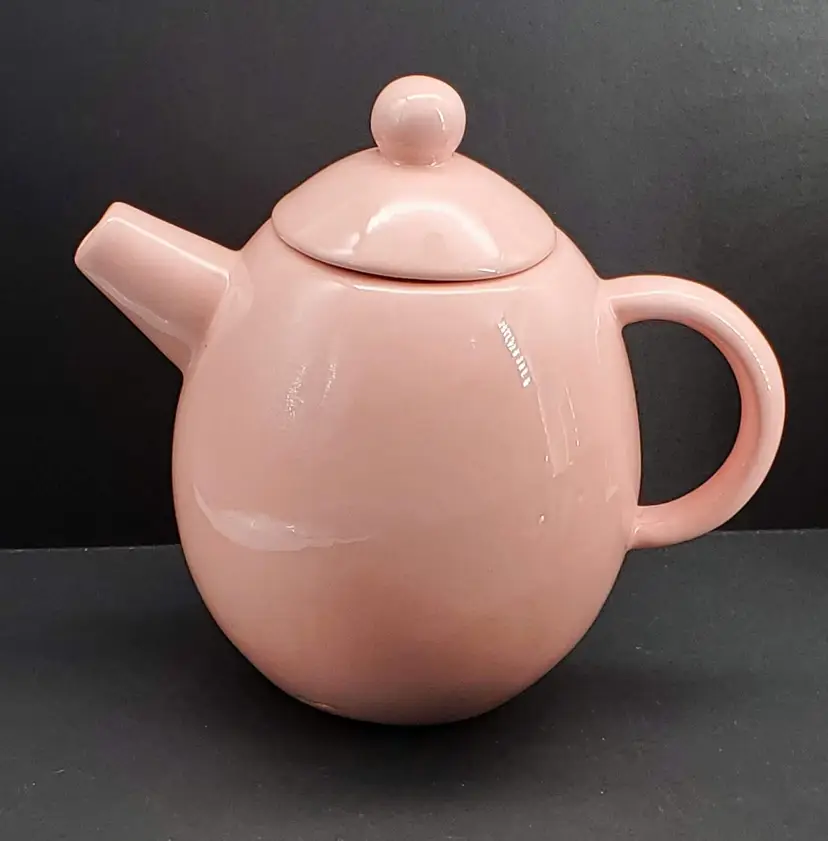 Rather unusual, charming, hand-glazed ceramic tea pot features a beautiful pink color with a glossy finish.