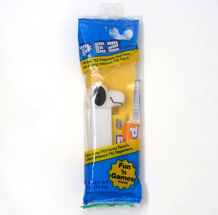 Dispense your PEZ candies with a little help from Snoopy from the Peanuts comic strip. In Original package.