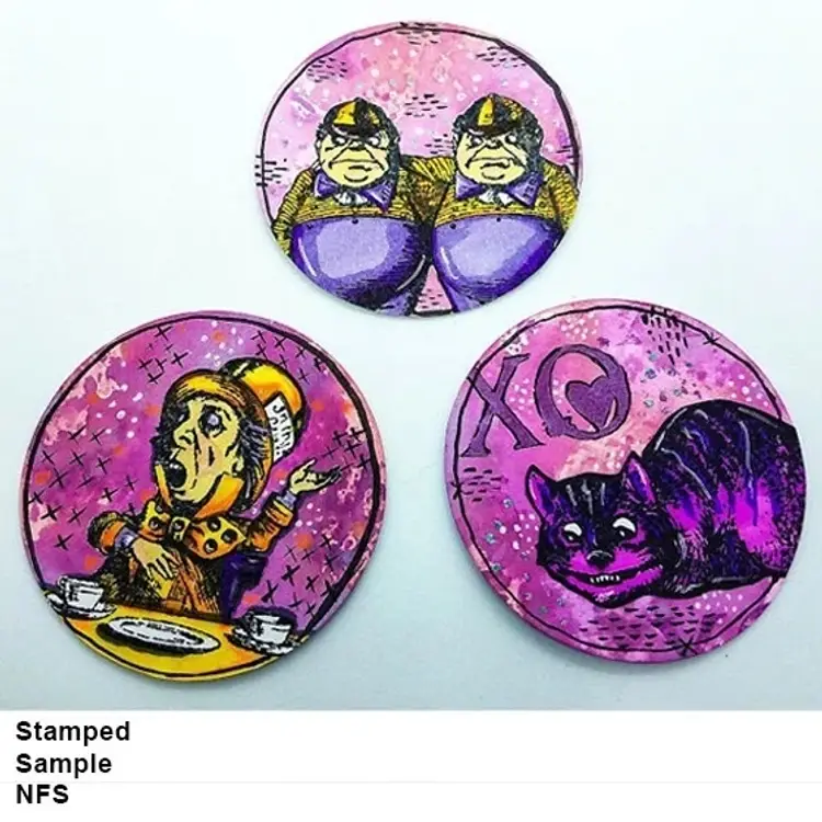 Cheshire Cat from Alice In Wonderland Rubber Stamp Wood Mounted Size: 2-1/2 x 2-1/4 inches Red rubber Brand new/unused • Great for crafts, junk journals, mixed media projects, collage, card making and tags. • First purchase on District? Use this code for $5 off a $10 min purchase. ALOHAG34