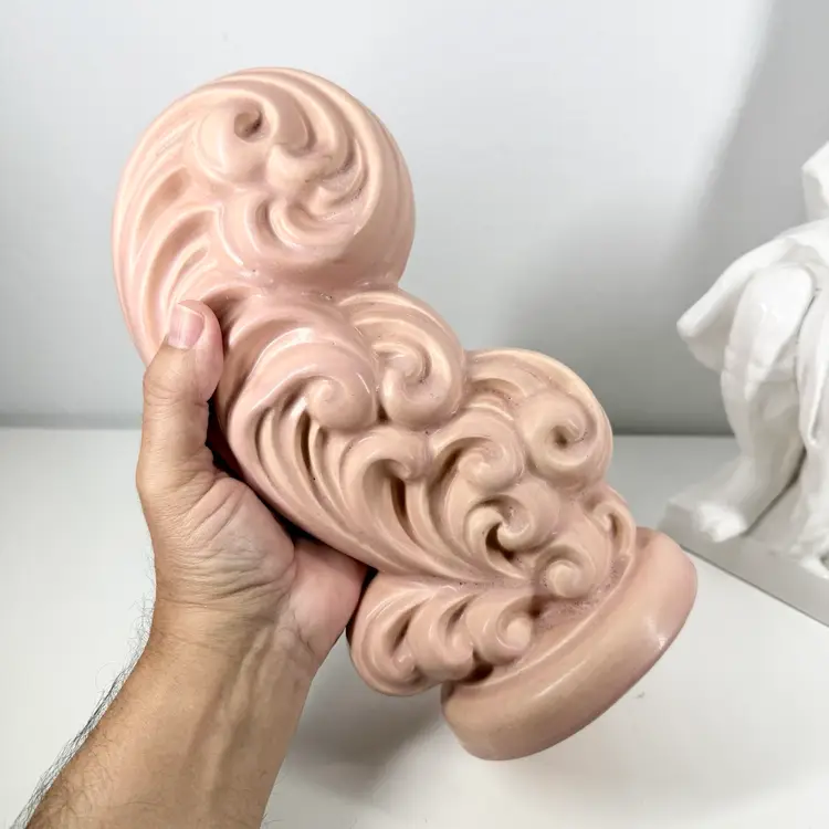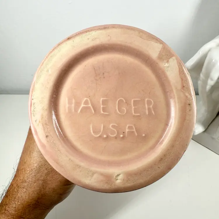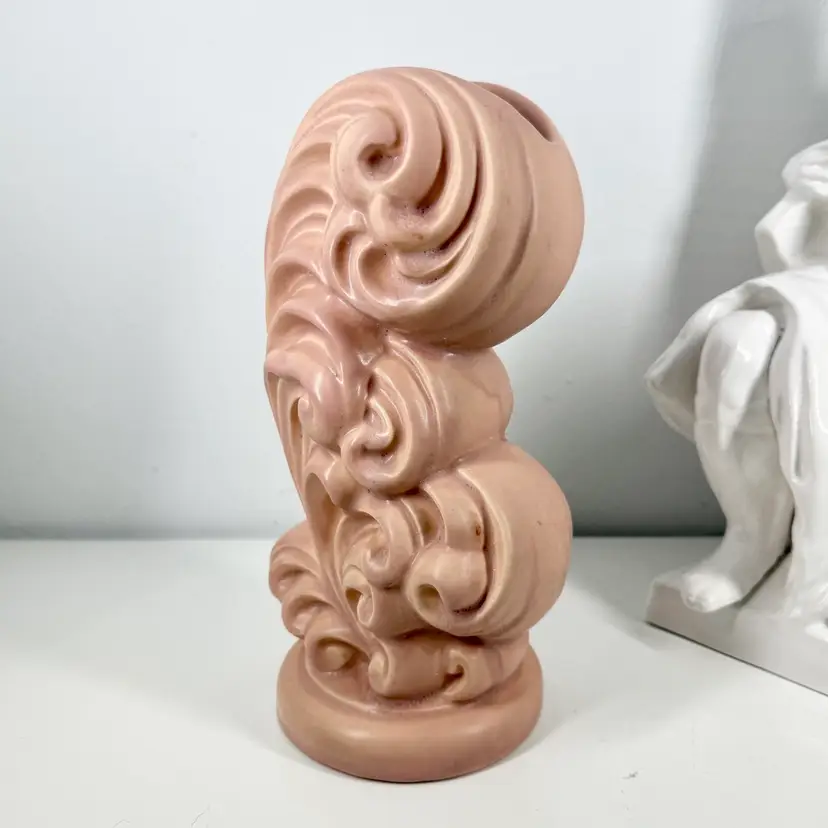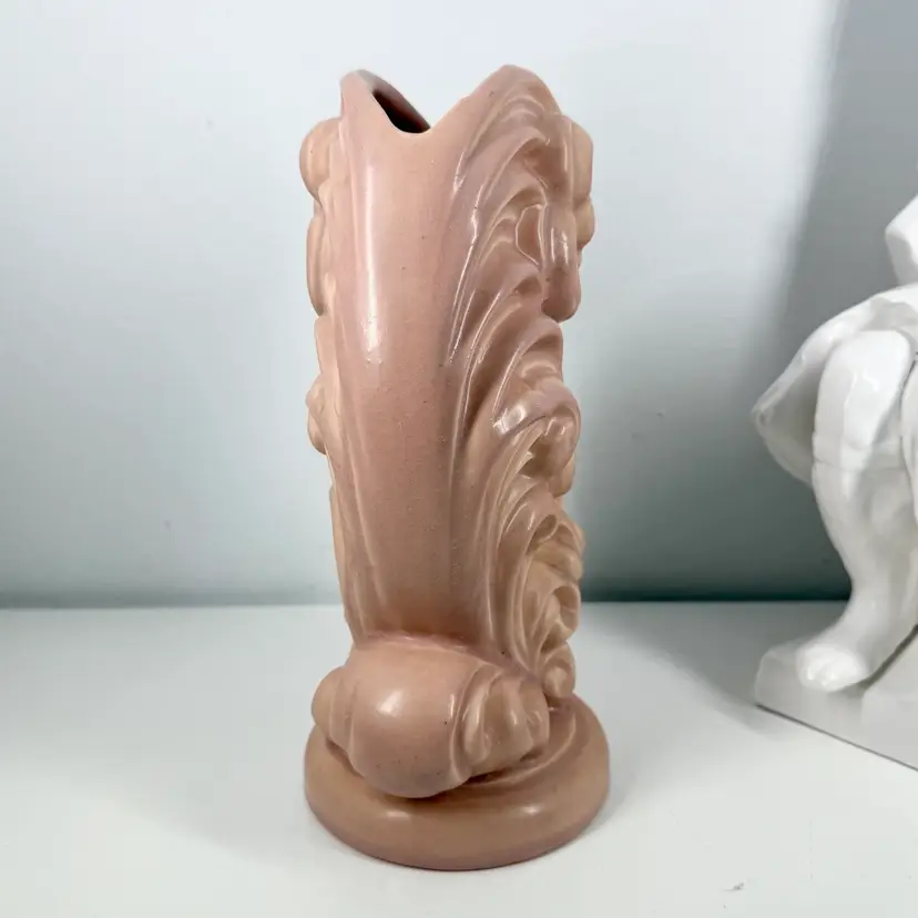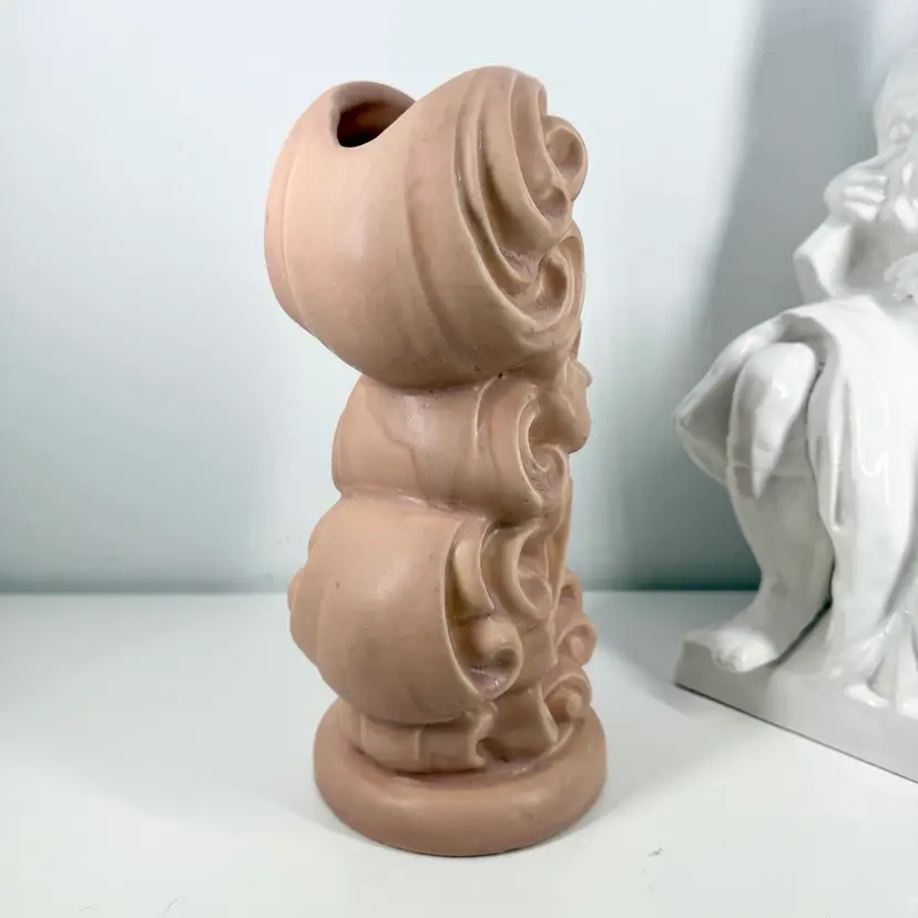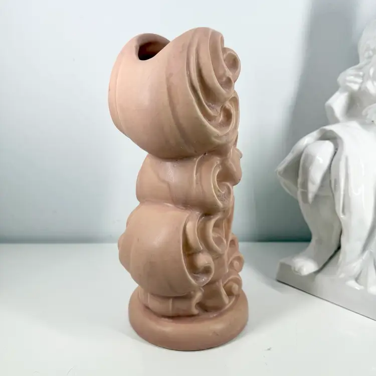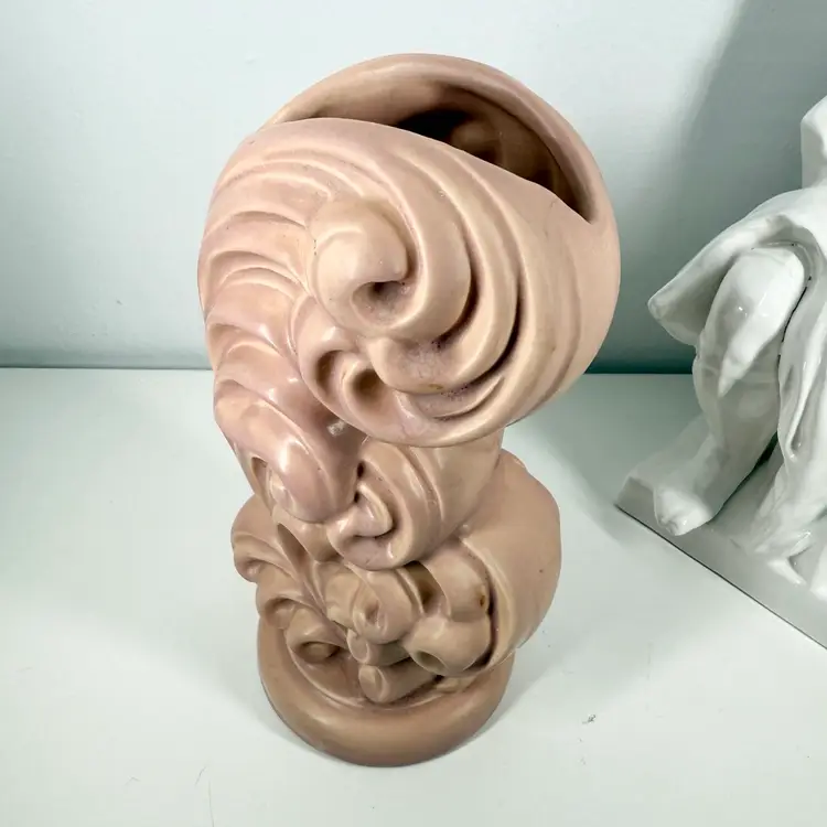 An American classic. 40s original ceramic vase. Very dramatic. Please review pics. In good condition with a few spots of staining and a possible surface crazing crack.