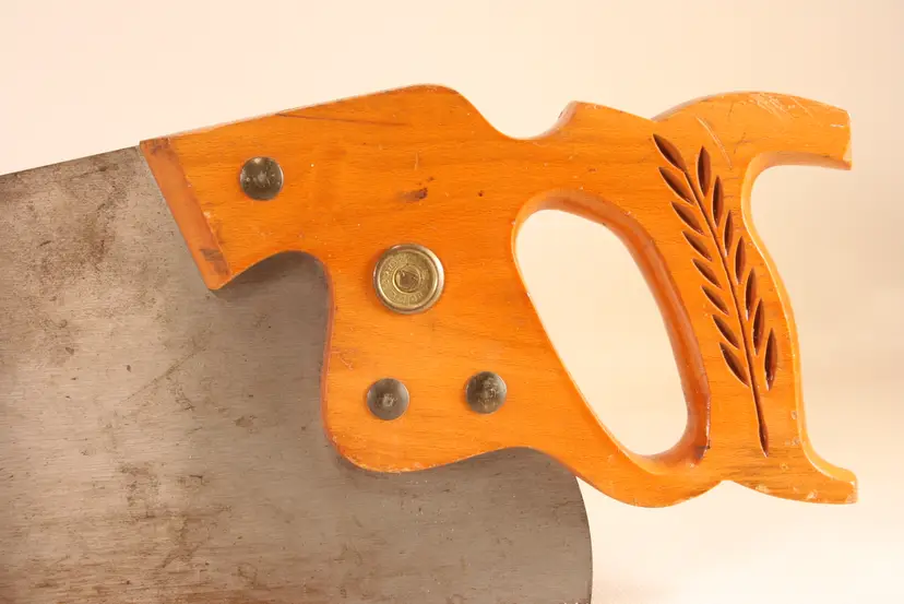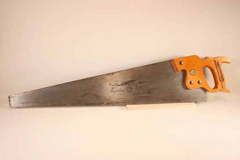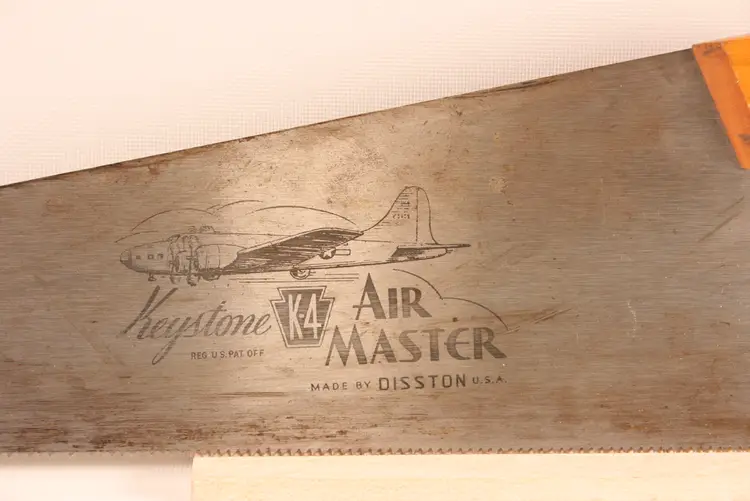 Good handle, Straight taper ground blade. Nice strong etch with a B-17 bomber. These saws were made mid 1930s to mid 1950s and based on the etch this one is likely from 1940s. Keystone was Disston's second line of saws, good saws but Disston's best.