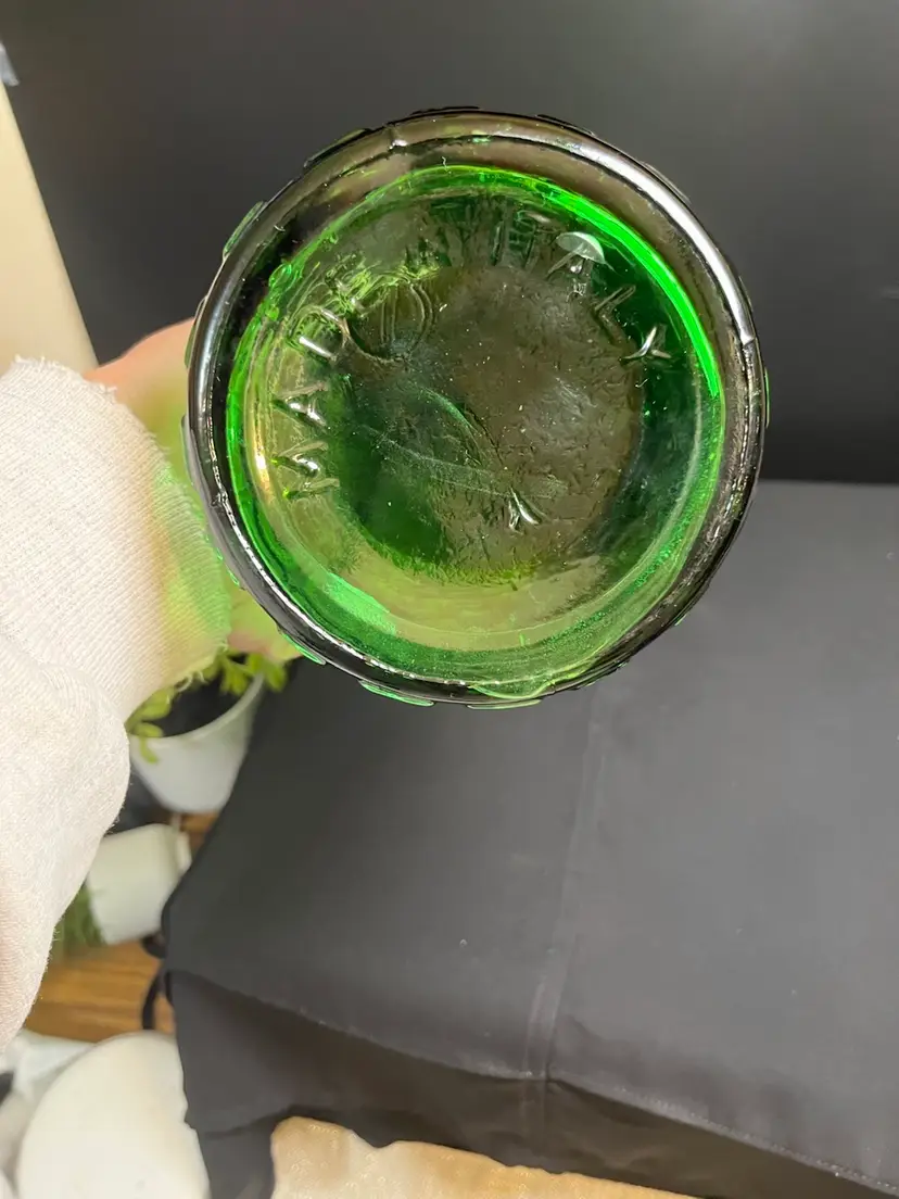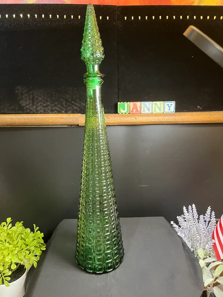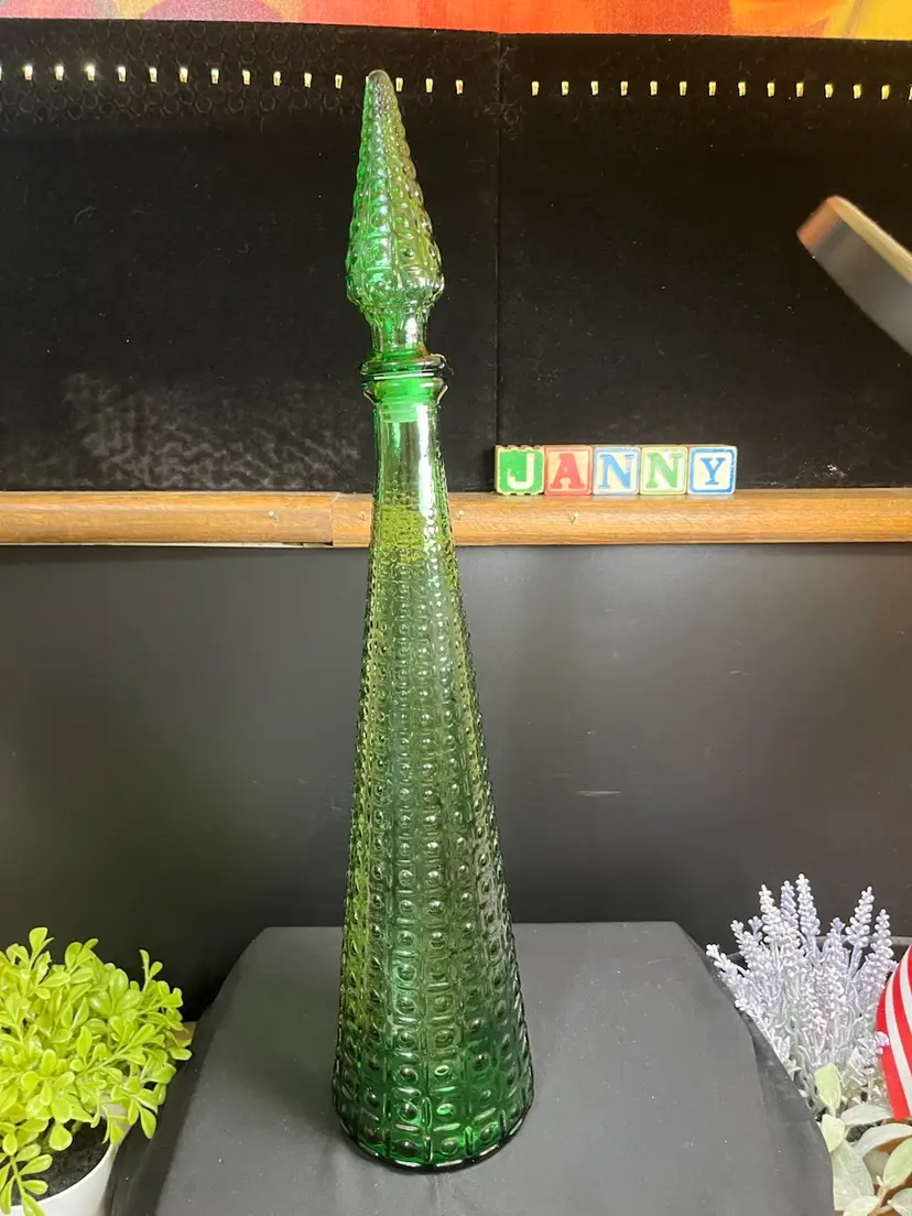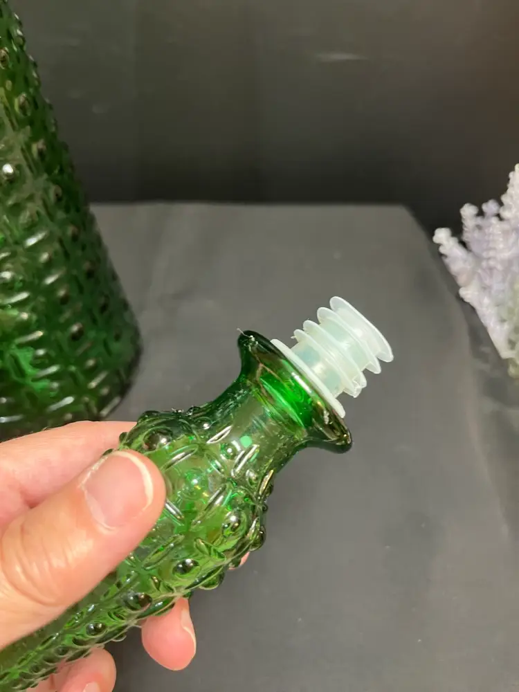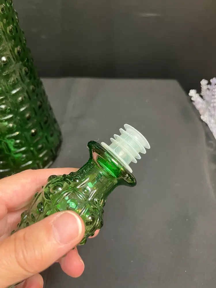 This is beautiful! There are absolutely no call outs, it is in excellent vintage condition. Does not UV glow. Stopper is intact, as is the seal (No cracking of plastic seal). Measures with stopper approx 20.5", 4.25" at base, 2 1/4 Lbs. This will ship alone