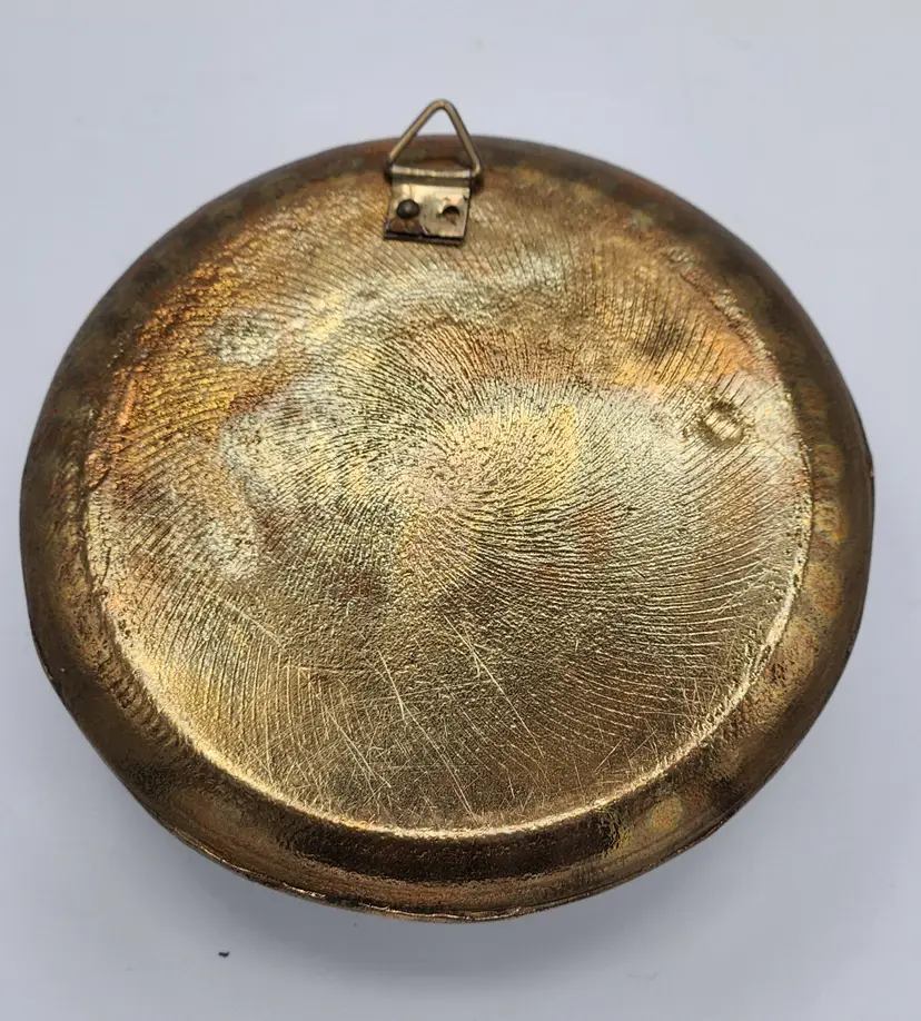 Enamel hand painted vintage coaster/sauce plate/wall plate on solid brass or bronze, features the Parthenon. Greek folk art handmade in Greece between 1960-1970. 3.5" in diameter. Shows some wear.