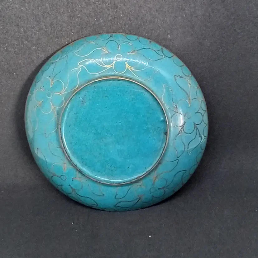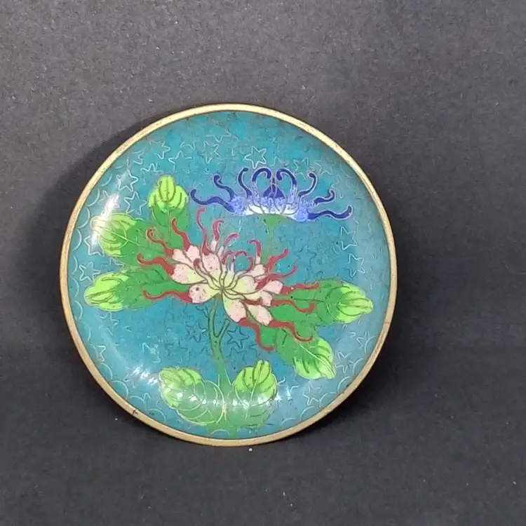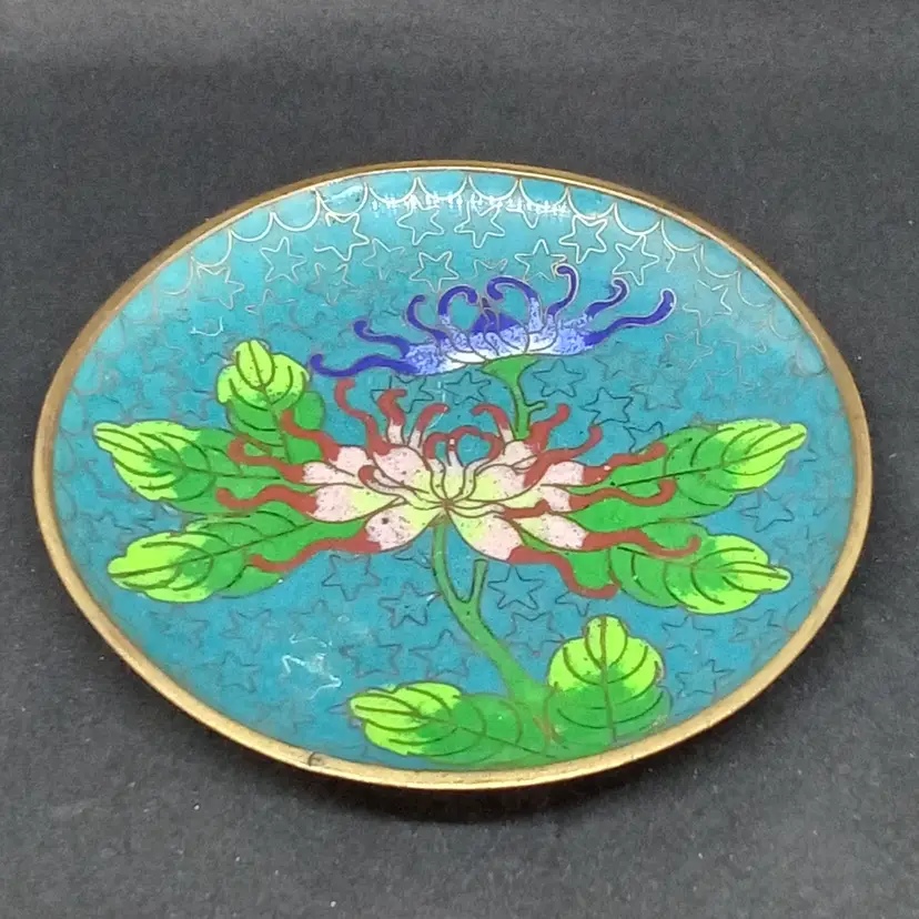 Elegant Enamel Gold Tone Lotus Flower Trinket Dish