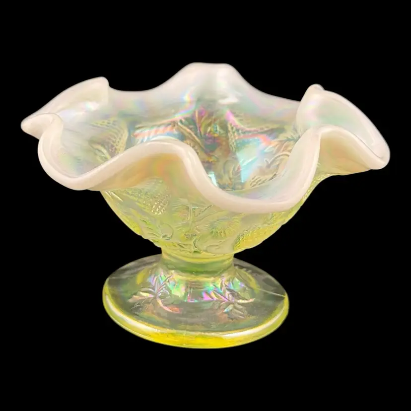 Fenton Topaz Opalescent Inverted Strawberry Dish 5โ€ UV Glow (#2)