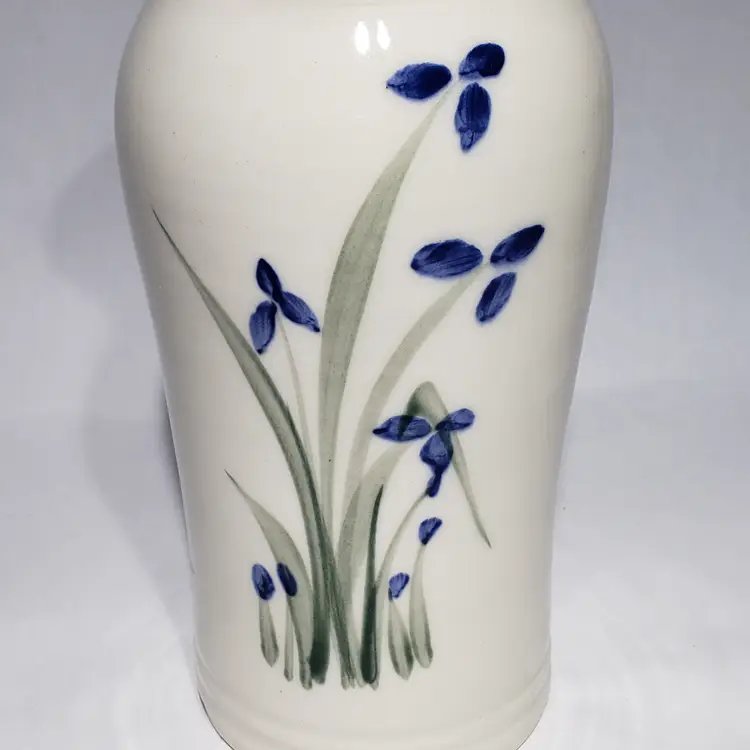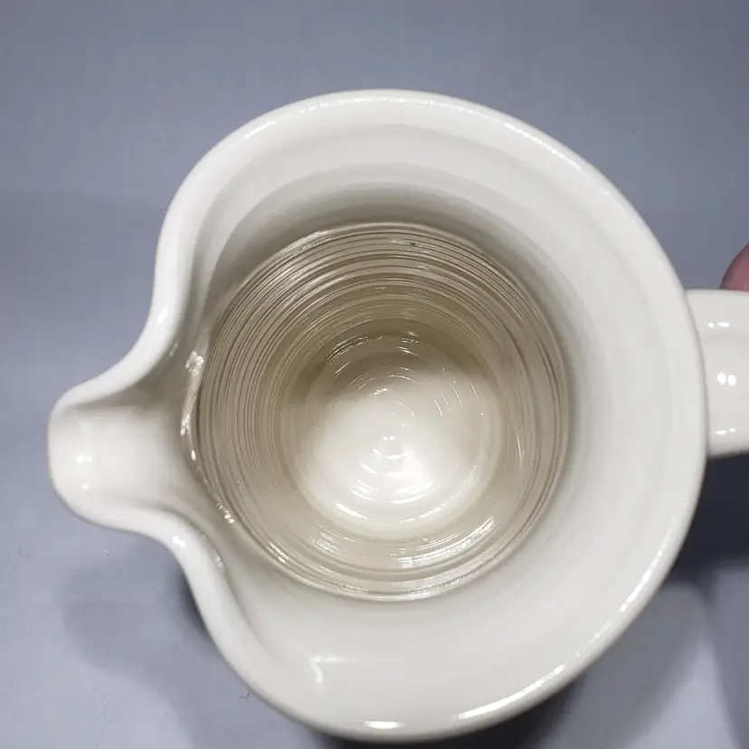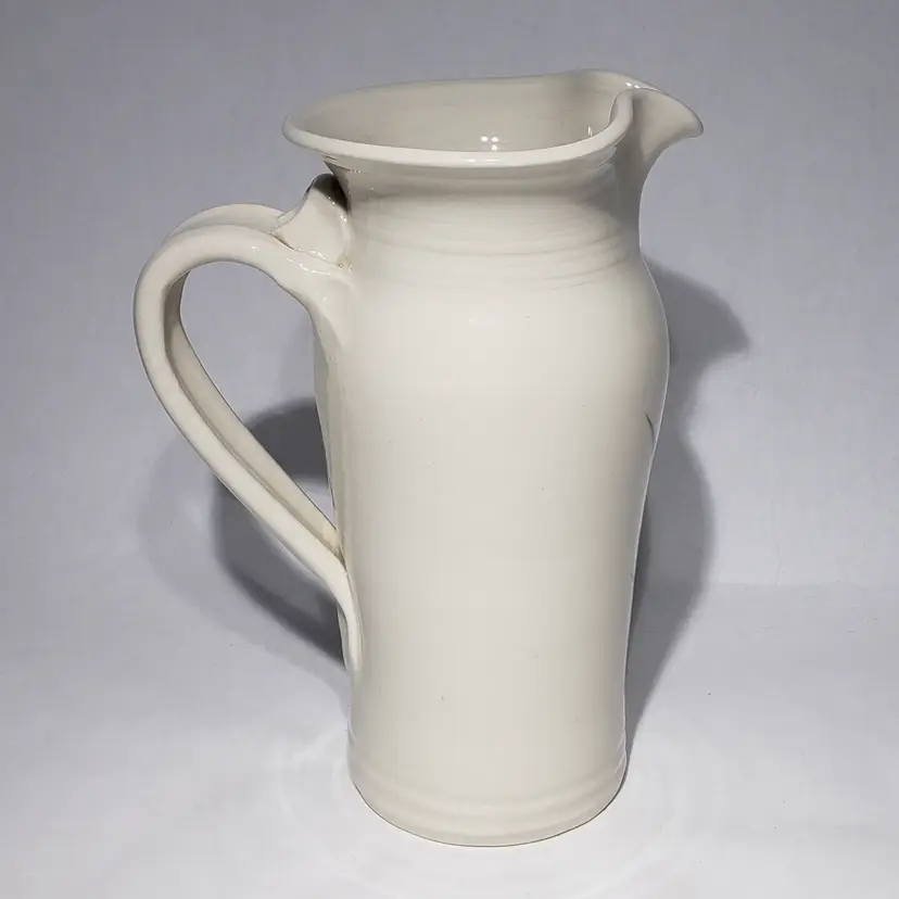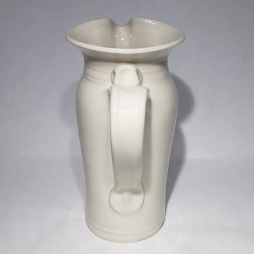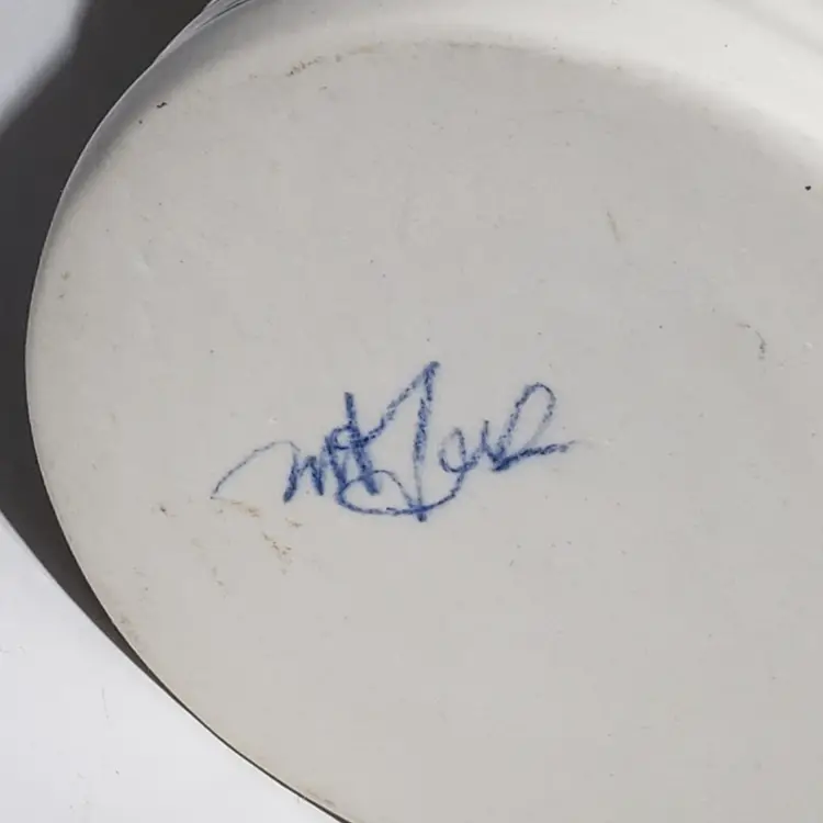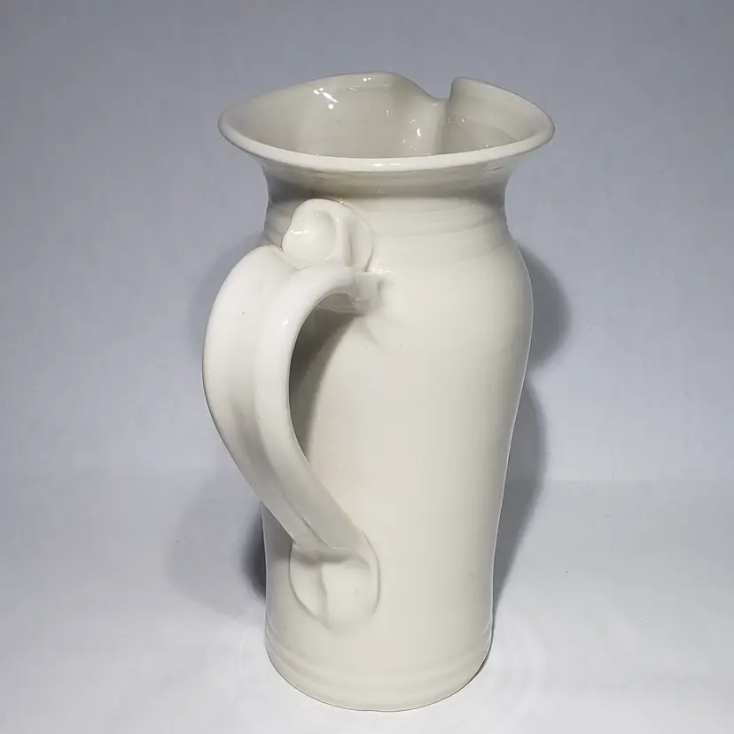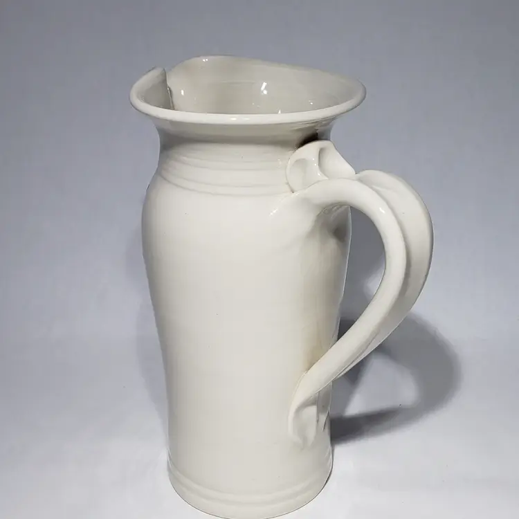 Art Pottery White Blue Flowers Stoneware Pitcher Artist Signed Applied Handle Measures: 6" x 4.5" x 8.5" Pre-owned. No cracks or chips. See Photos.