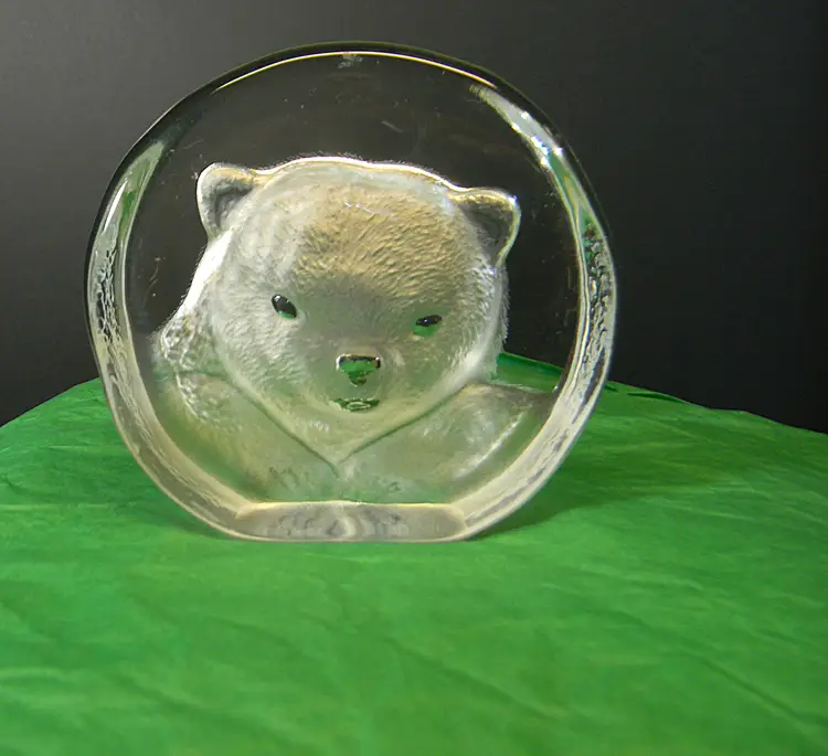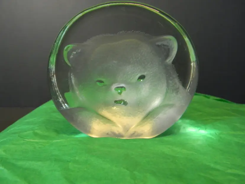 Frosted Glass Bear Art Glass/ Paperweight No chips or cracks used condition see photos The difference in computer monitors actual colors may vary slightly from those shown