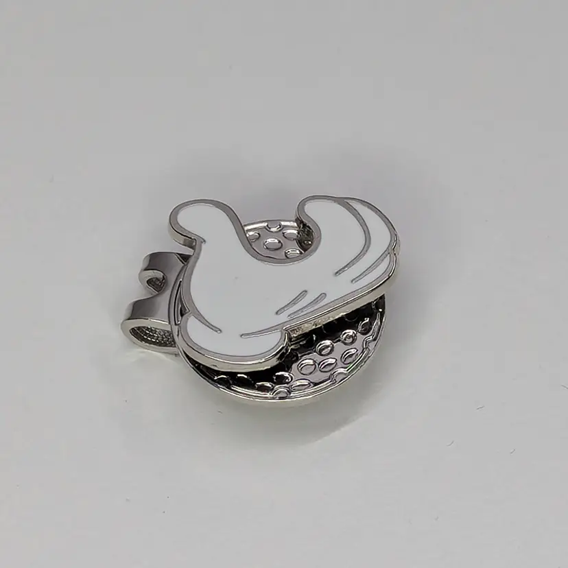 This unique ball marker is handmade from an Official Disney Trading Pin. Add some Disney magic to your golf game with this fun Mickey Mouse glove golf ball marker. The marker features a multicolor design with a metal construction and a hat clip for easy attachment to your golf hat. It is perfect for any golf enthusiast who loves to show off their love for Mickey Mouse and Disney. This golf ball marker is a great addition to your golf accessories collection and makes a perfect gift for any Disney fan. Get ready to hit the golf course in style with this unique and fun Disney Mickey Mouse glove golf ball marker.